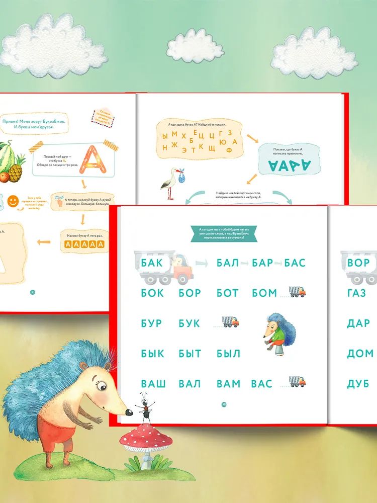 В этом букваре обучение происходит в форме игры: как сложить букву из наклеек? Что написал в своем письме БукваЁжик? Малышу не терпится побыстрее узнать ответы на свои вопросы – так, незаметно для себя, он осваивает буквы и совсем скоро начнет читать самостоятельно!