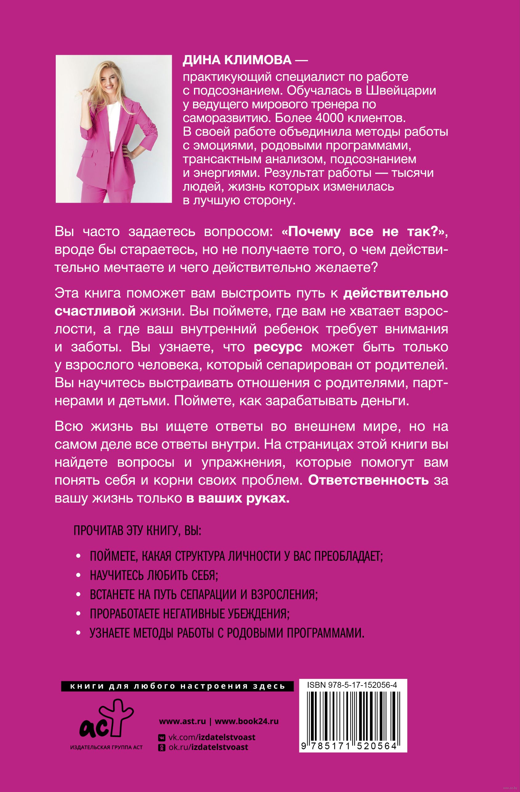Книга "F#ck! Почему все не так? Как стать взрослым ресурсным человеком" поможет вам выстроить путь к действительно счастливой жизни. Вы поймете, где вам не хватает взрослости, а где ваш внутренний ребенок требует внимания и заботы. Вы узнаете, что ресурс может быть только у взрослого человека, который сепарирован от родителей. Вы научитесь выстраивать отношения с родителями, партнерами и детьми. Поймете, как зарабатывать деньги.