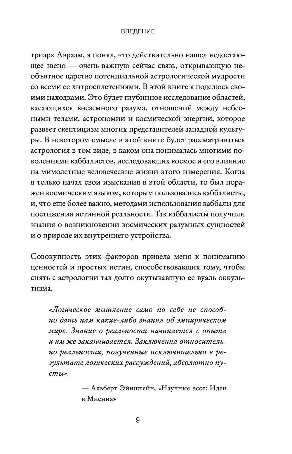 Одна из целей книги – снять с астрологии так долго окутывающую ее вуаль оккультизма и увидеть, что древнее учение о знаках Зодиака логично дополняет картину мира, созданную современными учеными. Высказывания Альберта Эйнштейна и знаменитого астрофизика Джона Уилера соседствуют здесь с цитатами из Торы и Зоара, а озарения мудрецов каббалы парадоксально перекликаются с открытиями астрономов.