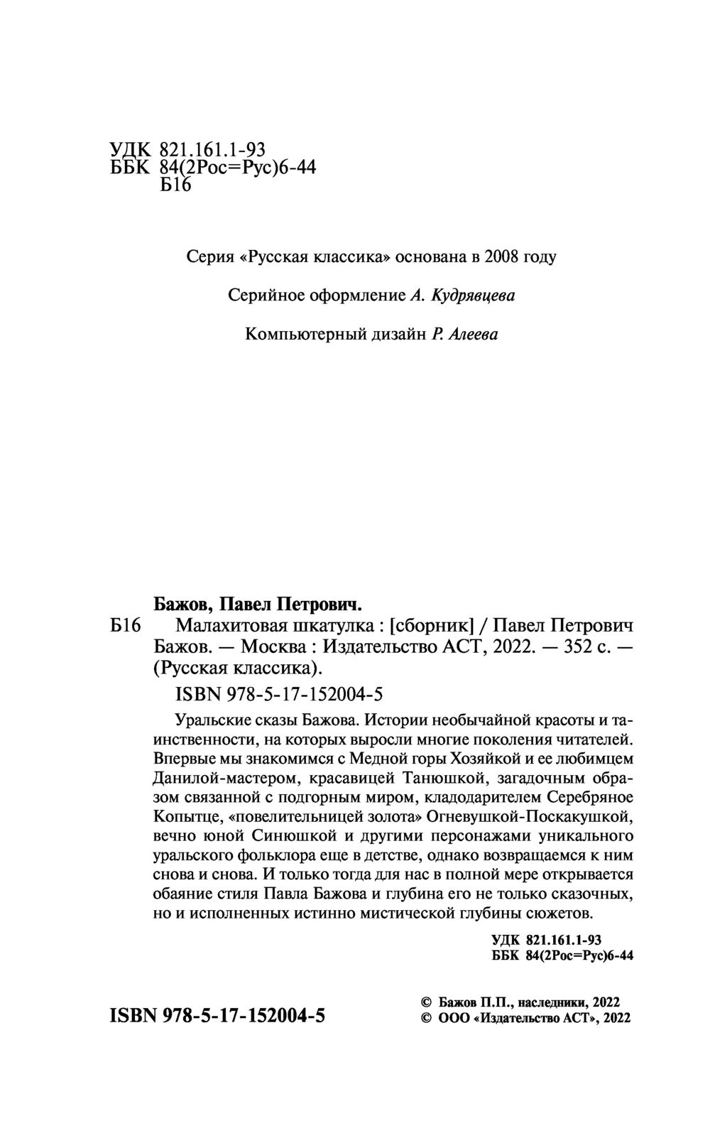 Малахитовая шкатулка. Уральские сказы. Уральские были. Повести