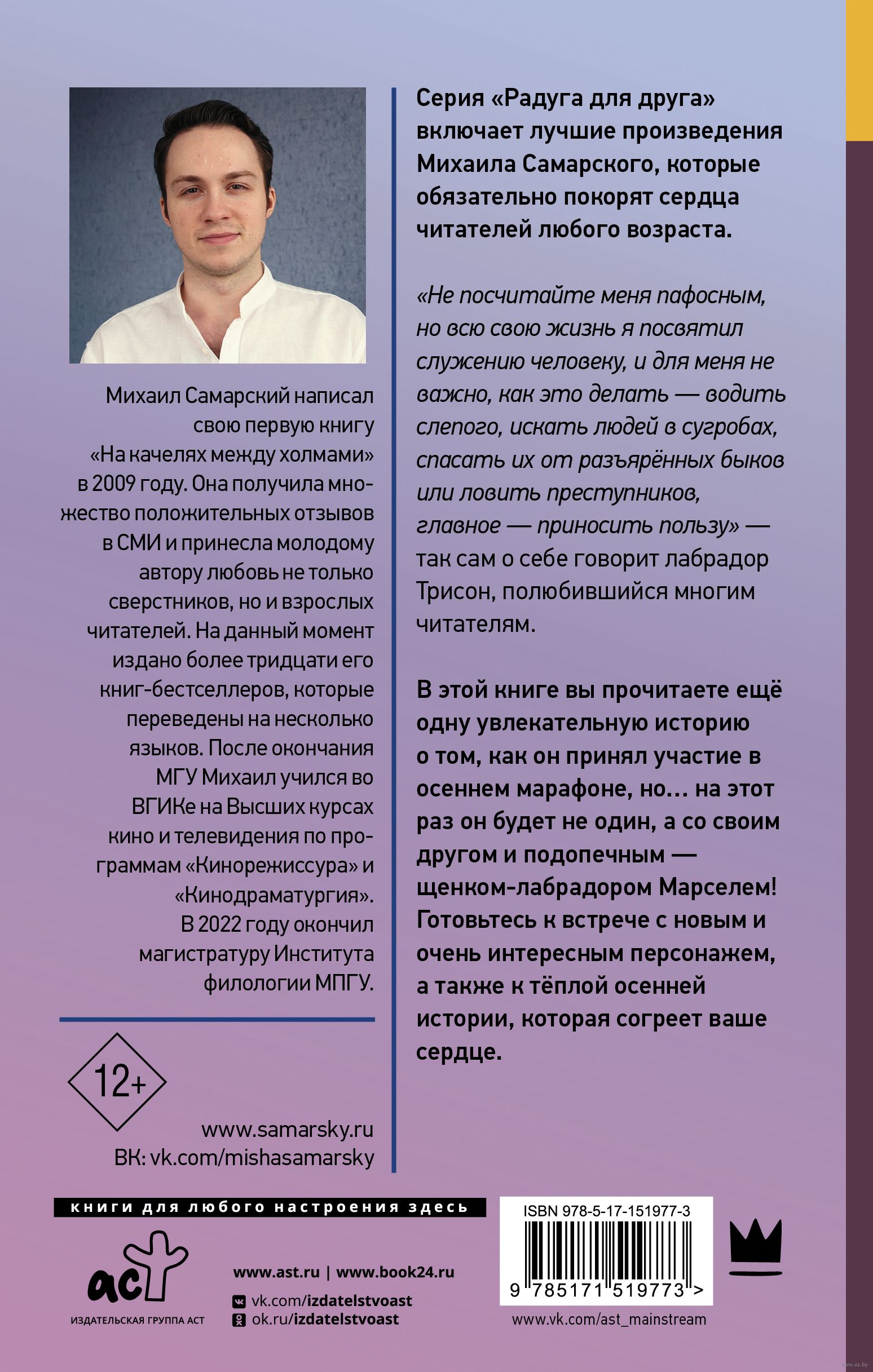 В этой книге вы прочитаете ещё одну увлекательную историю о том, как он принял участие в осеннем марафоне, но... на этот раз он будет не один, а со своим другом и подопечным – щенком-лабрадором Марселем!