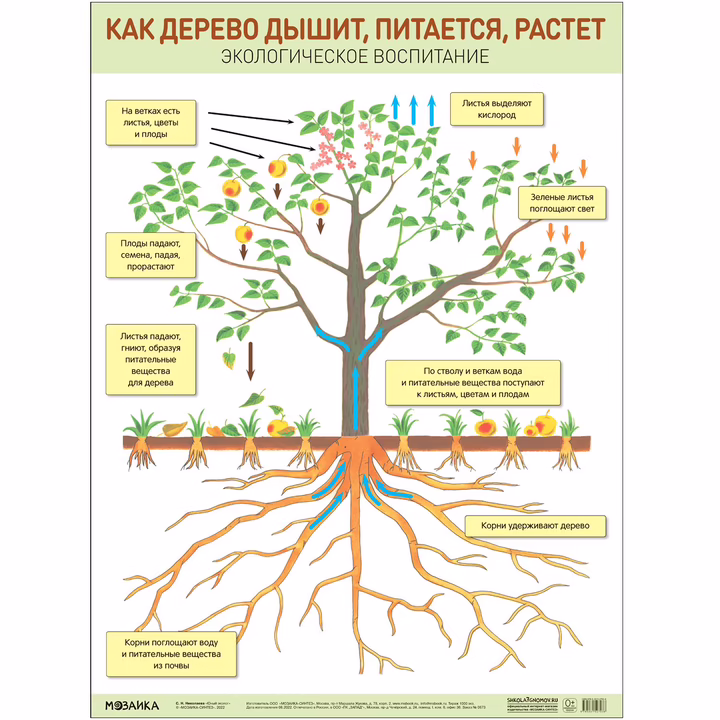 Данный тематический плакат используется в работе с детьми для расширения и уточнения знаний о деревьях, его строении, питании и росте.