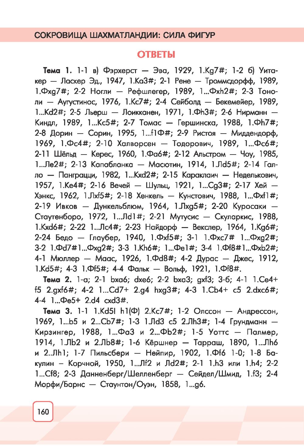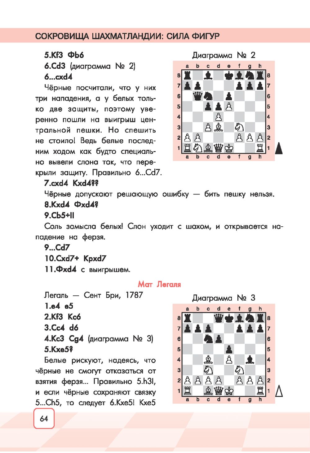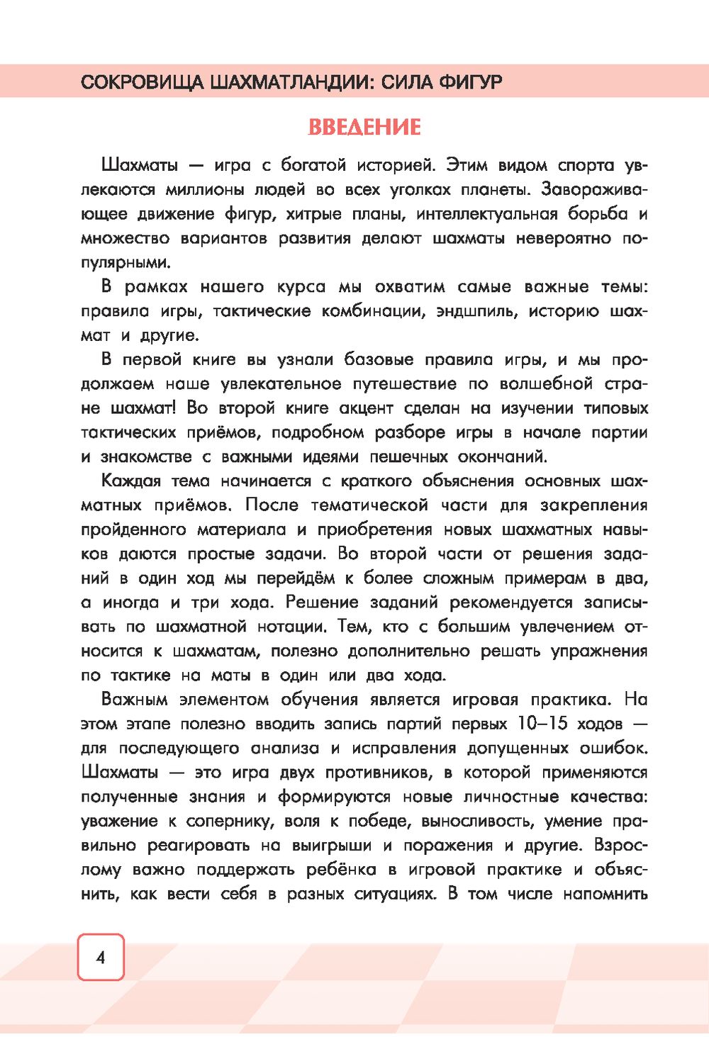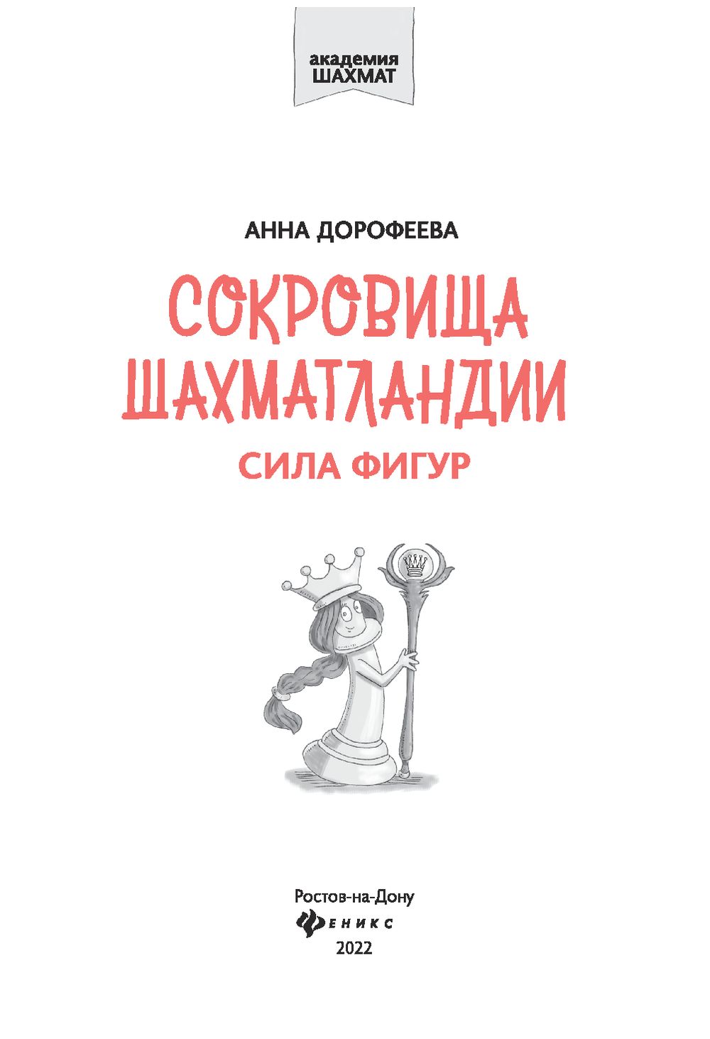 Перед вами вторая книга "Сокровища Шахматландии". Мы продолжаем путешествие в волшебный мир шахмат, и в этот раз вы узнаете более сложные правила и приёмы игры. Изучение дебютных принципов, новых тактических приёмов, важных позиций в эндшпиле обогатит ваш багаж знаний и поможет в будущем одержать красивые победы. Подробно разобранные темы, много примеров для решения и необычные задания – учиться играть в шахматы будет просто и интересно! Материал книги соответствует второму году обучения и предназначен для детей, родителей, тренеров и любителей шахмат. К шахматным вершинам вы отправитесь с опытным тренером, международным мастером по шахматам Анной Дорофеевой.