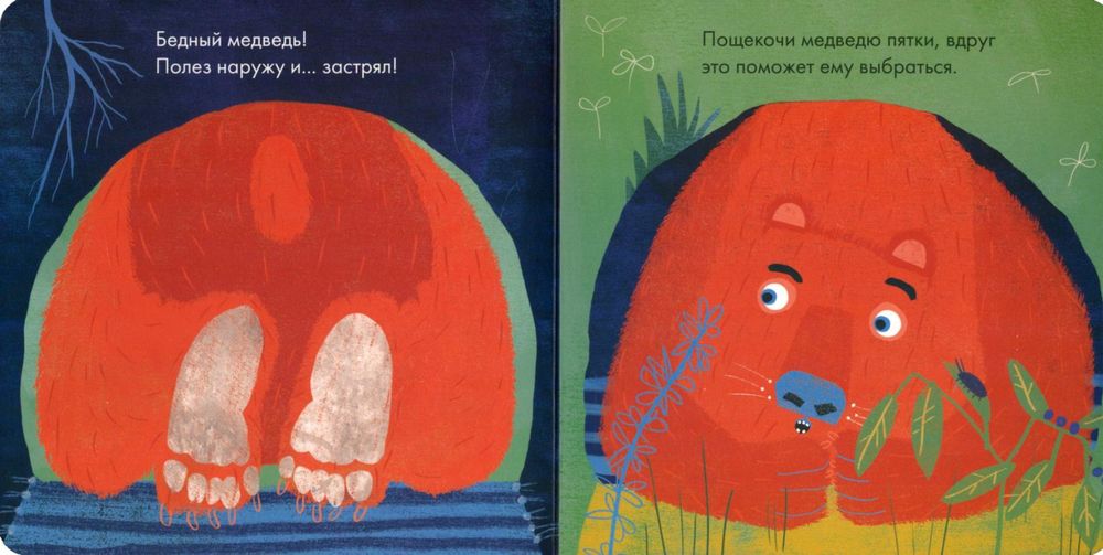 Книжка-картонка для самых маленьких, в которой воплотилось всё, что важно для первого совместного чтения, когда ребёнок уже может сам листать книгу и активно участвовать в процессе. Интерактивная история про бедного медведя, которому очень нужна ваша помощь! Это книжка-игра, в которой читатель принимает непосредственное участие, проживая с медведем один день его жизни.