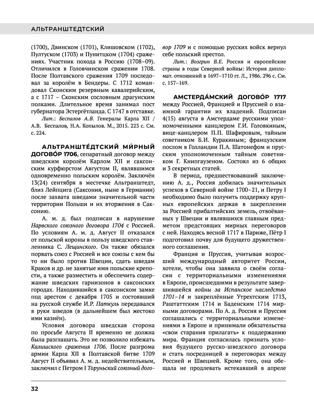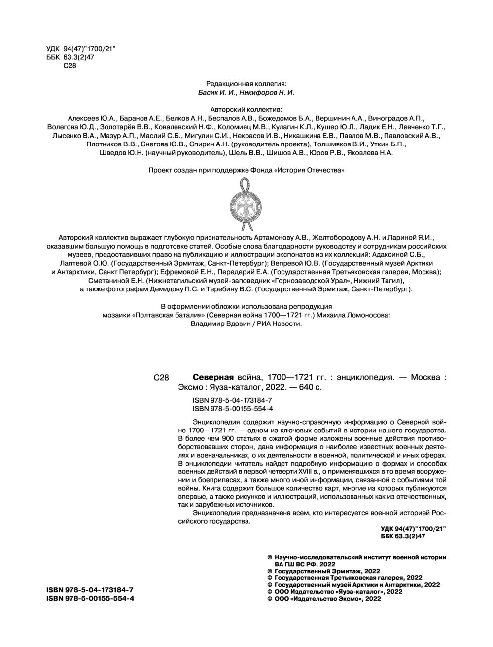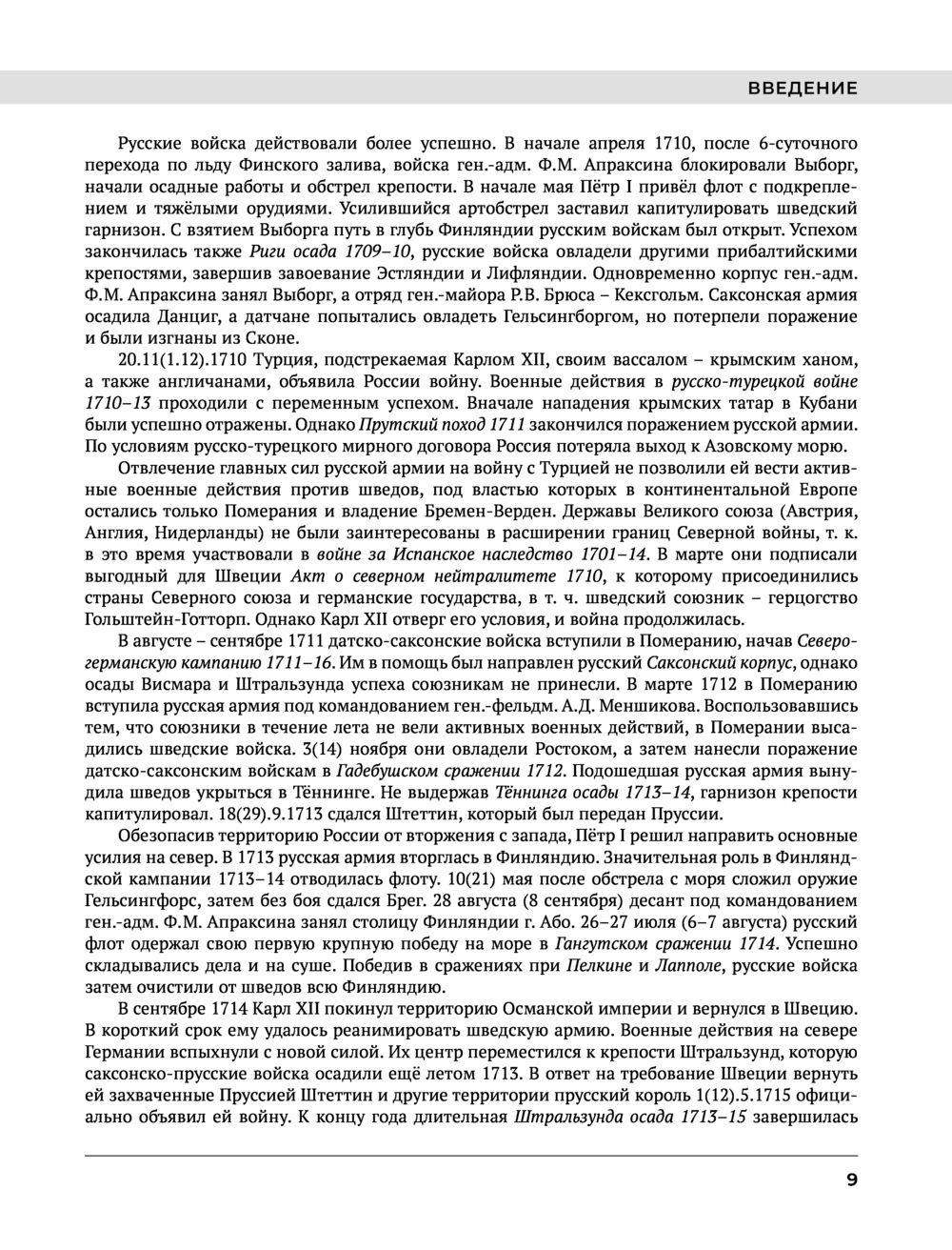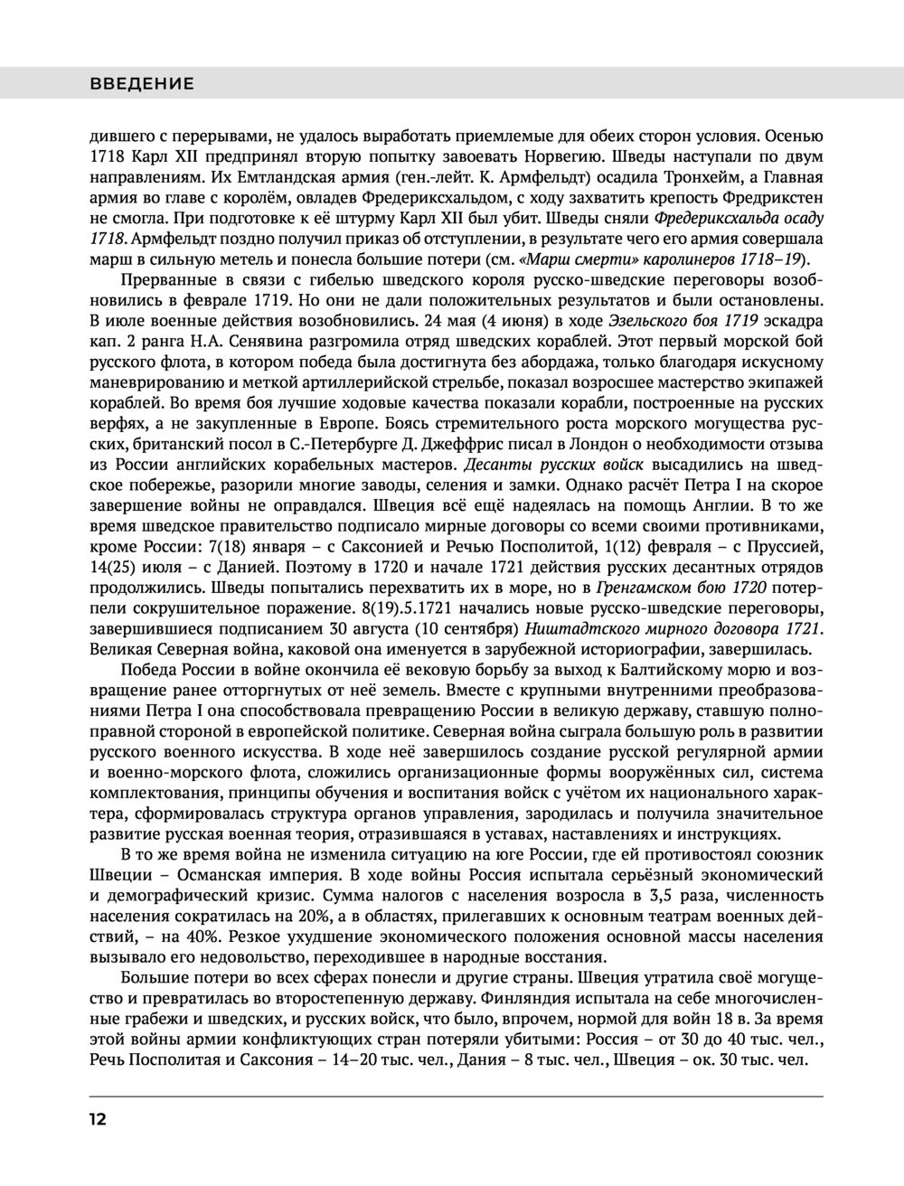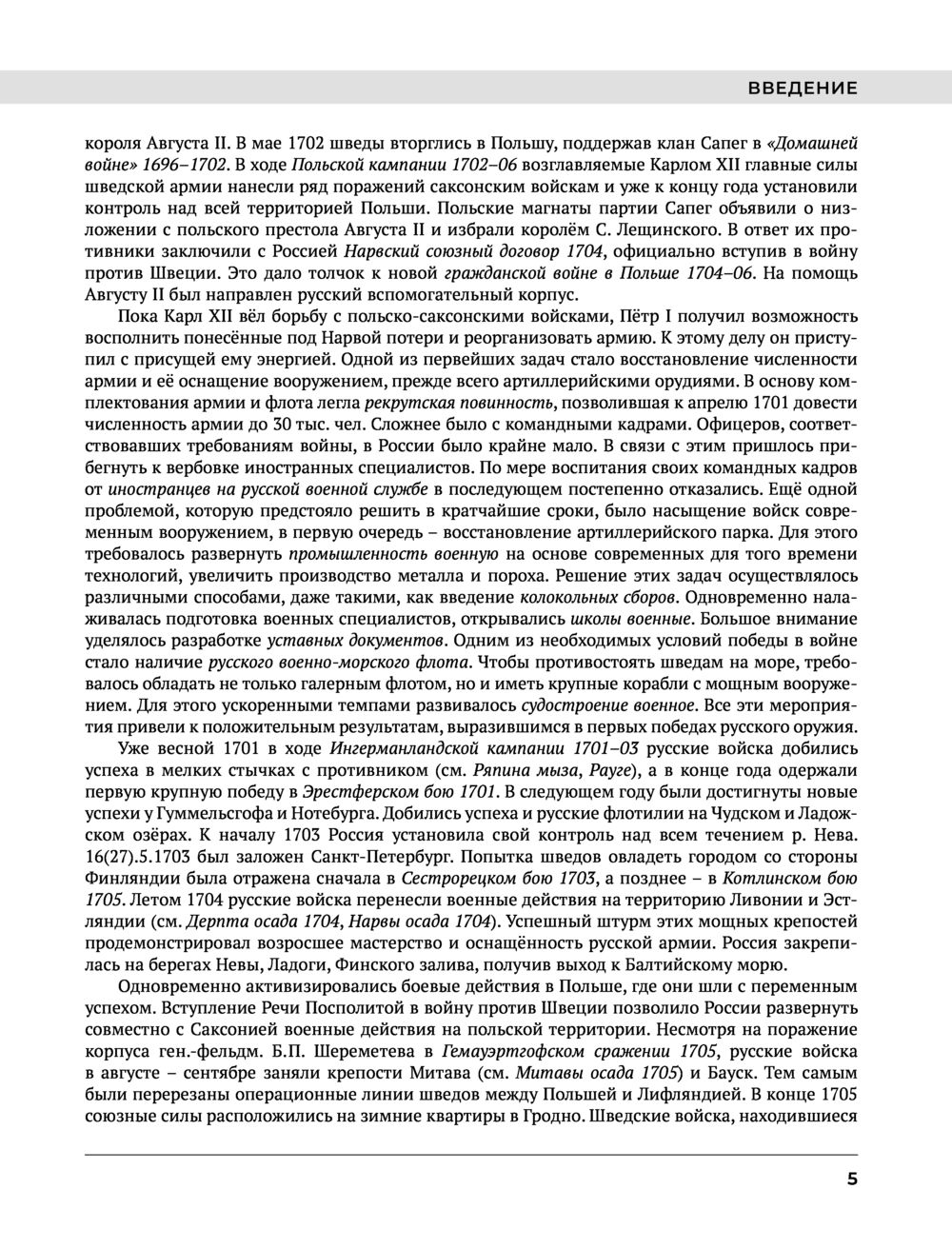 Энциклопедия содержит научно-справочную информацию о Северной войне 1700-1721 гг. – одном из ключевых событий в истории нашего государства. В более чем 900 статьях в сжатой форме изложены военные действия противоборствовавших сторон, дана информация о наиболее известных военных деятелях и военачальниках, об их деятельности в военной, политической и иных сферах. В энциклопедии читатель найдет подробную информацию о формах и способах военных действий в первой четверти XVIII в., о применявшихся в то время вооружении и боеприпасах, а также много иной информации, связанной с событиями той войны. Книга содержит большое количество карт, многие из которых публикуются впервые, а также рисунков и иллюстраций, использованных как из отечественных, так и зарубежных источников.