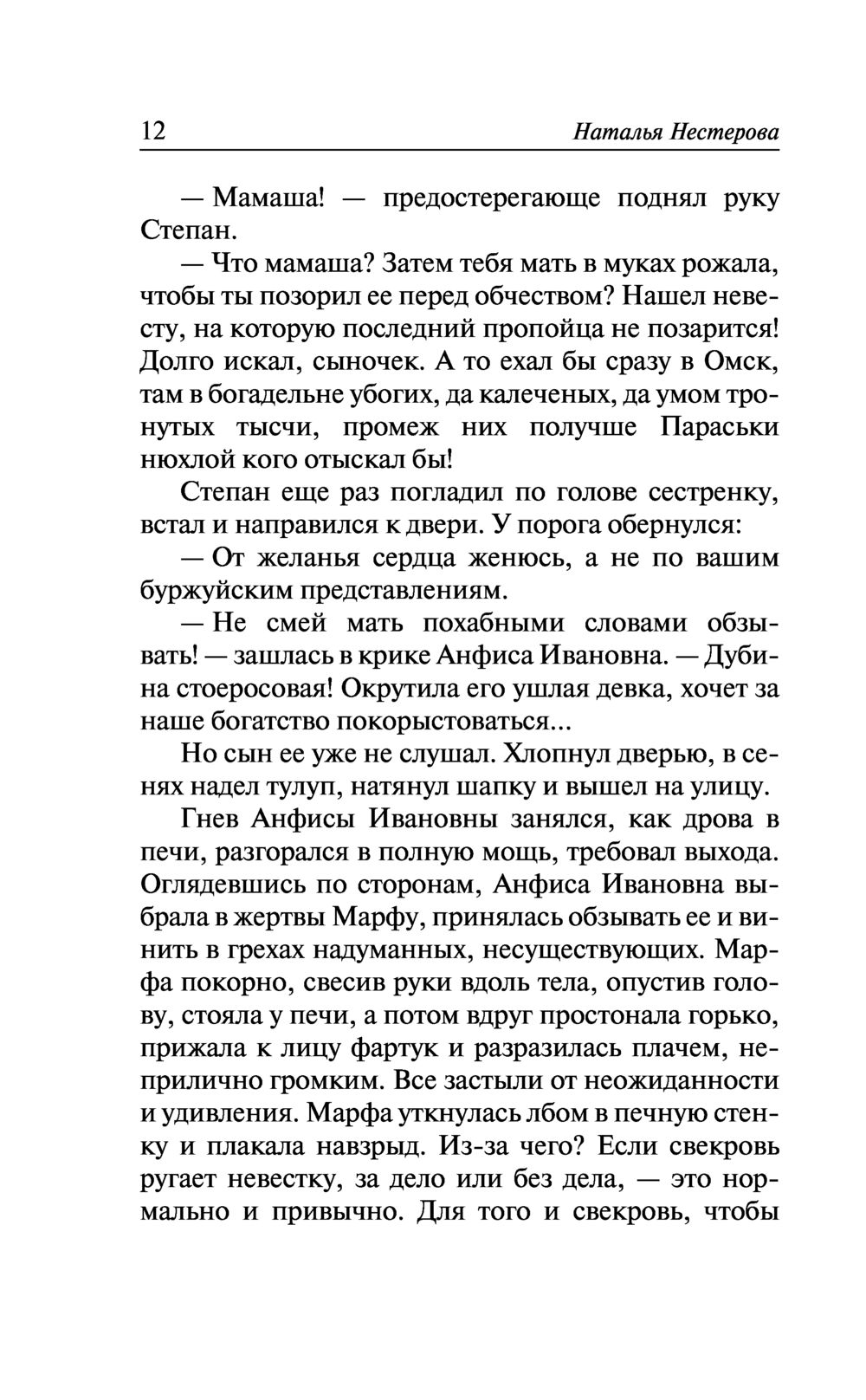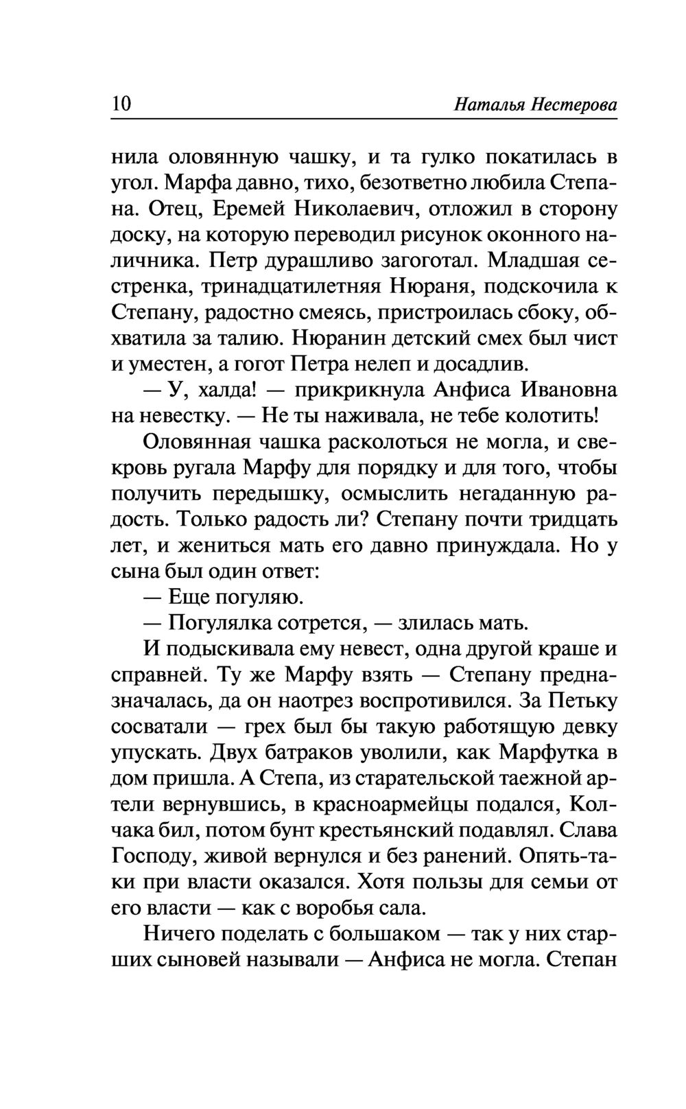 Сибирь, двадцатые годы самого противоречивого века российской истории. С одной стороны – сельсовет, советская власть. С другой – "обчество", строго соблюдающее устои отцов и дедов. Большая семья Анфисы под стать безумному духу времени: хозяйке важны достаток и статус, чтобы дом полная чаша, всем на зависть, а любимый сын – представитель власти, у него другие ценности. Анфисина железная рука едва успевает наводить порядок, однако новость, что Степан сам выбрал себе невесту, да еще и "доходягу шклявую, голытьбу беспросветную", для матери как нож по сердцу. То ли еще будет...