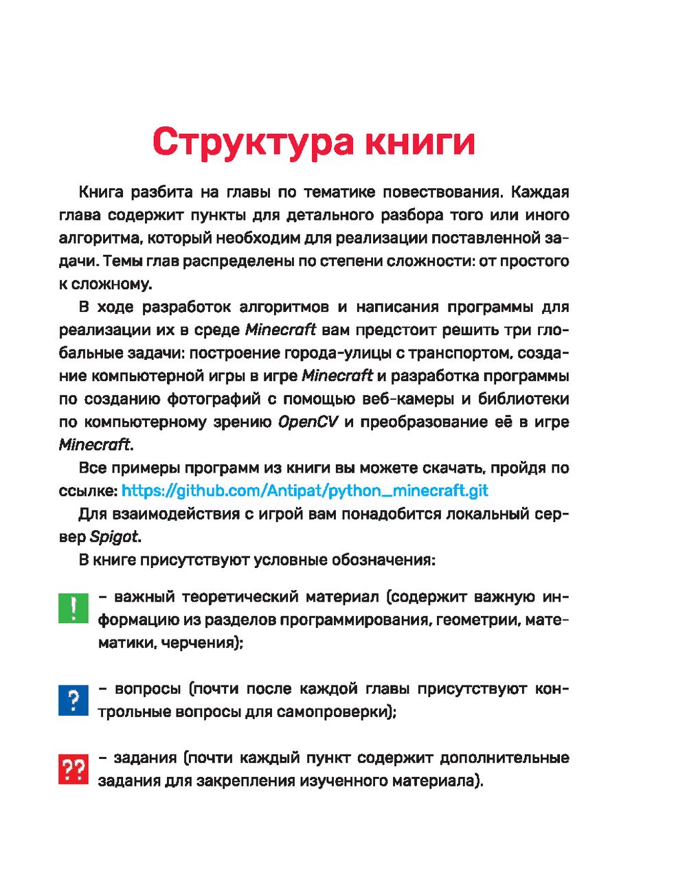 Книга "Python. Великое программирование в Minecraft" расскажет вам, как научиться программировать на языке Python, используя игру Minecraft. Изучать языки программирования не всегда тяжело и скучно.
