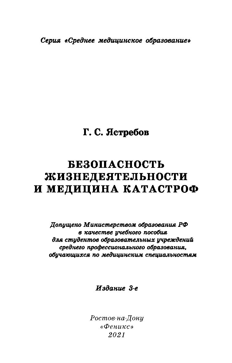 Рекомендуется в качестве учебного пособия для преподавателей по дисциплине "Безопасность жизнедеятельности и медицина катастроф", а также для подготовки спасателей и медицинских формирований ГО и ЧС.