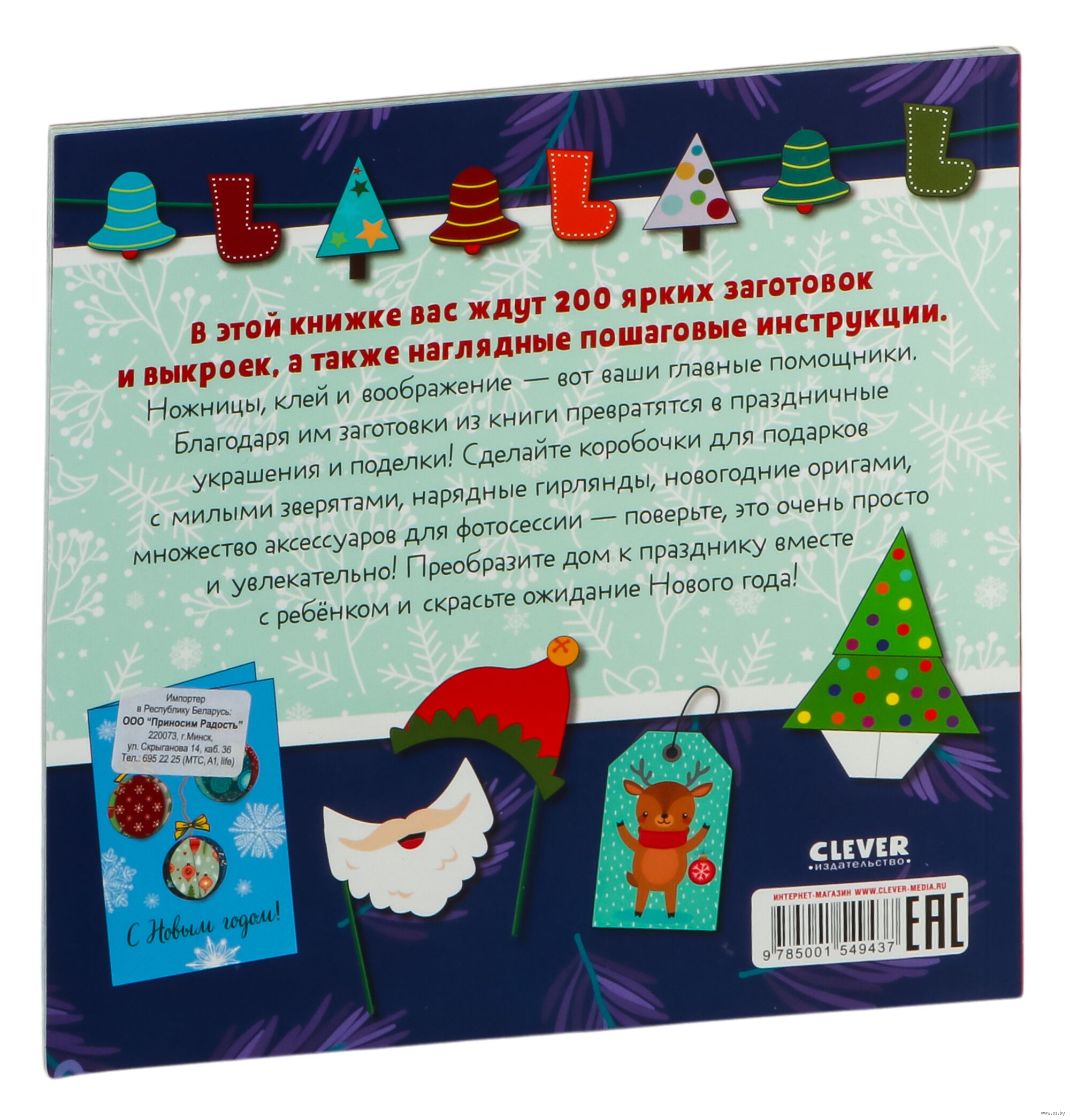 В наборе "Новогодние украшения и поделки из бумаги. 200 заготовок" уже есть все необходимые выкройки – вам понадобятся только ножницы, нитки, клей и немного воображения. Эта книга увлечет и развлечет ребенка в ожидании праздника, а еще поможет развить мелкую моторику и творческое мышление.