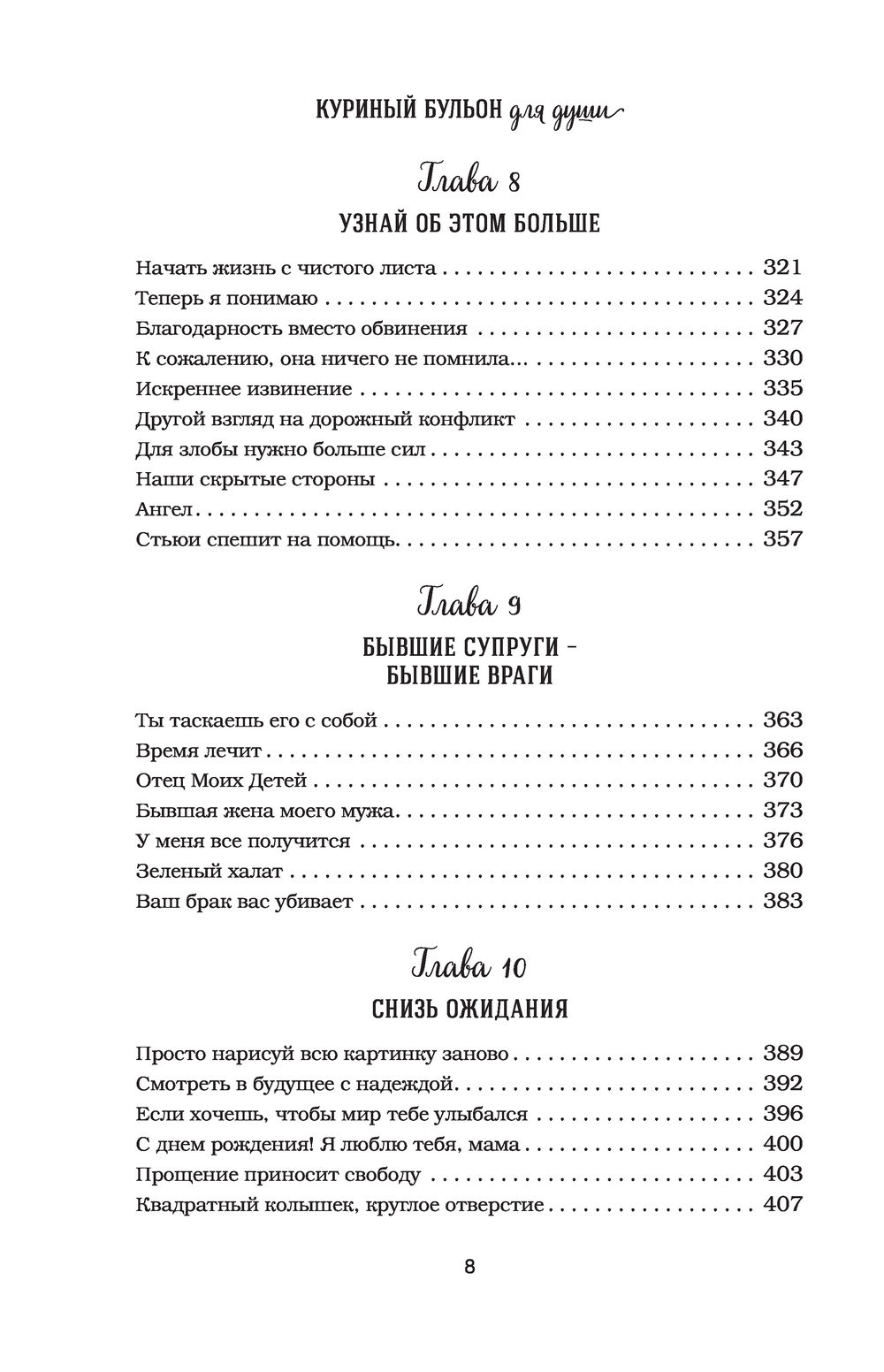 Маленькие истории из "Куриного бульона" исцелят душевные раны и укрепят дух, дадут вашим мечтам новые крылья и откроют секрет самого большого счастья – счастья делиться и любить.