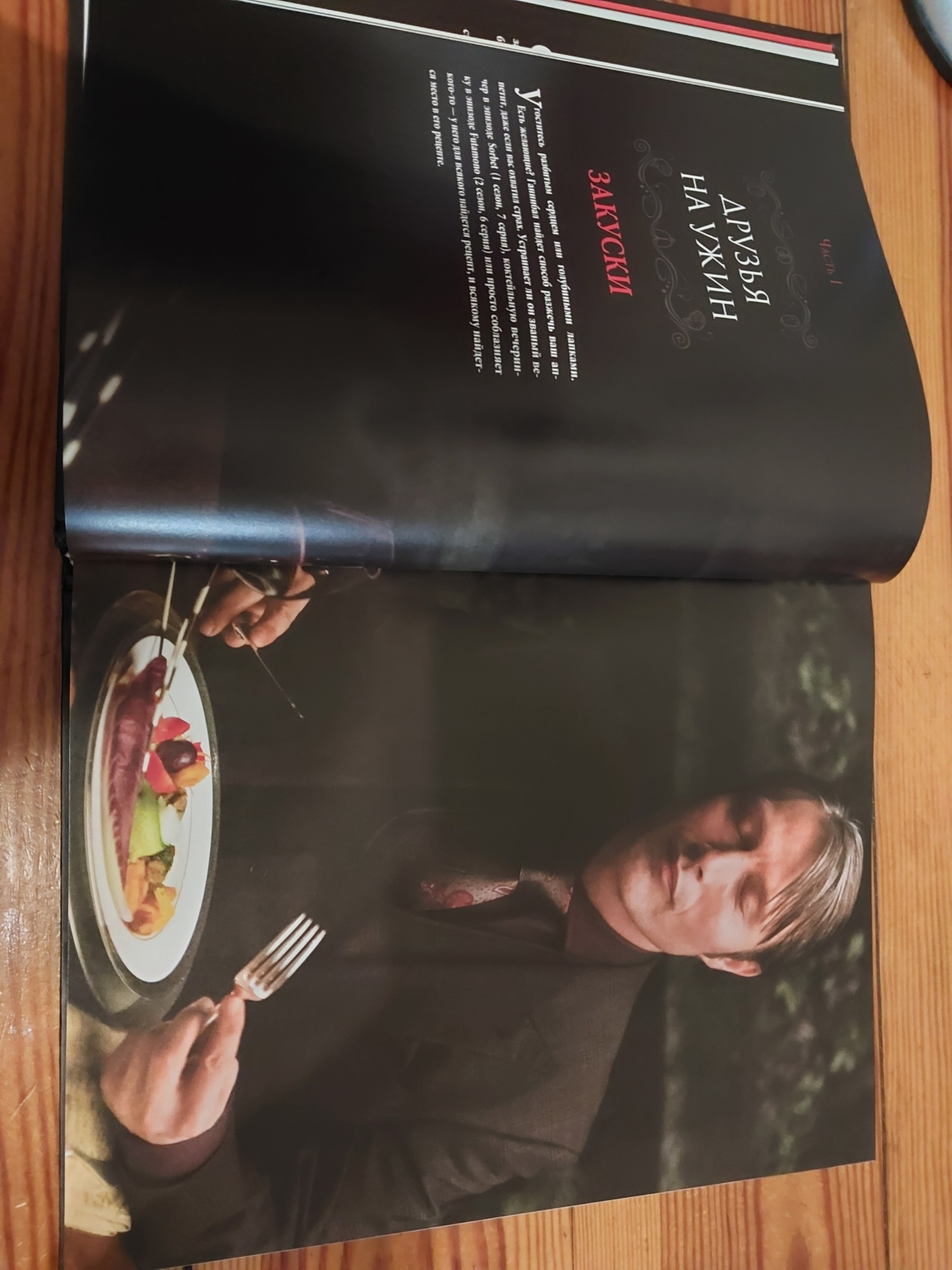 "Накормить Ганнибала: поваренная книга ценителя" – это сборник элегантных рецептов по мотивам шоу. Сериал снискал популярность не только из-за неоднозначной фигуры Ганнибала Лектера, но и благодаря особенной эстетике и стилю, созданных шоу-раннером Брайаном Фуллером. Поваренная книга позволит воплотить эстетическое безумие и уникальную атмосферу званого ужина доктора Лектера на любой кухне. Помимо оригинальных рецептов читателя ждут советы по стилизации праздничного стола и закулисные истории.