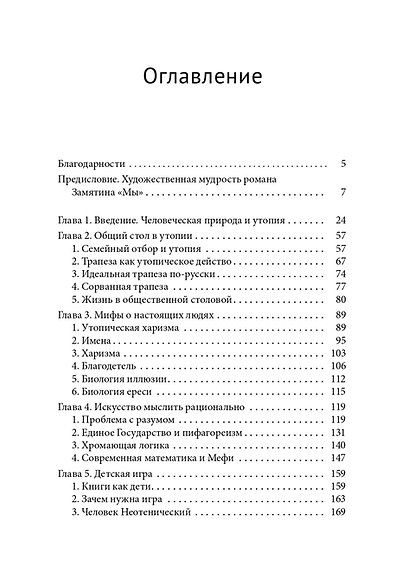 Исследователь обращается к таким темам, как игра, сексуальность, совместное потребление пищи, евгеника, и проводит параллели между романом "Мы" и другими антиутопическими произведениями, а также романами русских авторов, включая Достоевского и Толстого.