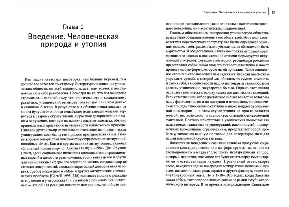 Бретт Кук исследует темы знаменитого романа Евгения Замятина с позиций биопоэтики, которая применяет эволюционную психологию к искусству вместо того, чтобы делать акцент на социальном конструировании человеческого поведения и сознания.
