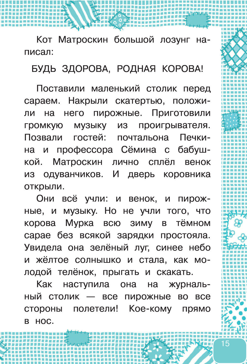 В этой книге ты прочтёшь весёлые истории о приключениях своих любимых героев из деревни Простоквашино – дяди Фёдора и его верных друзей. Ты узнаешь, как веселятся на праздниках и как справляются с трудностями жители Простоквашино. В конце книги тебя ждут хитрые вопросы, которые помогут лучше понять текст и подготовиться к занятиям в школе. Ведь все сообразительные дети умеют отвечать на вопросы к прочитанному тексту – и учатся на отлично!