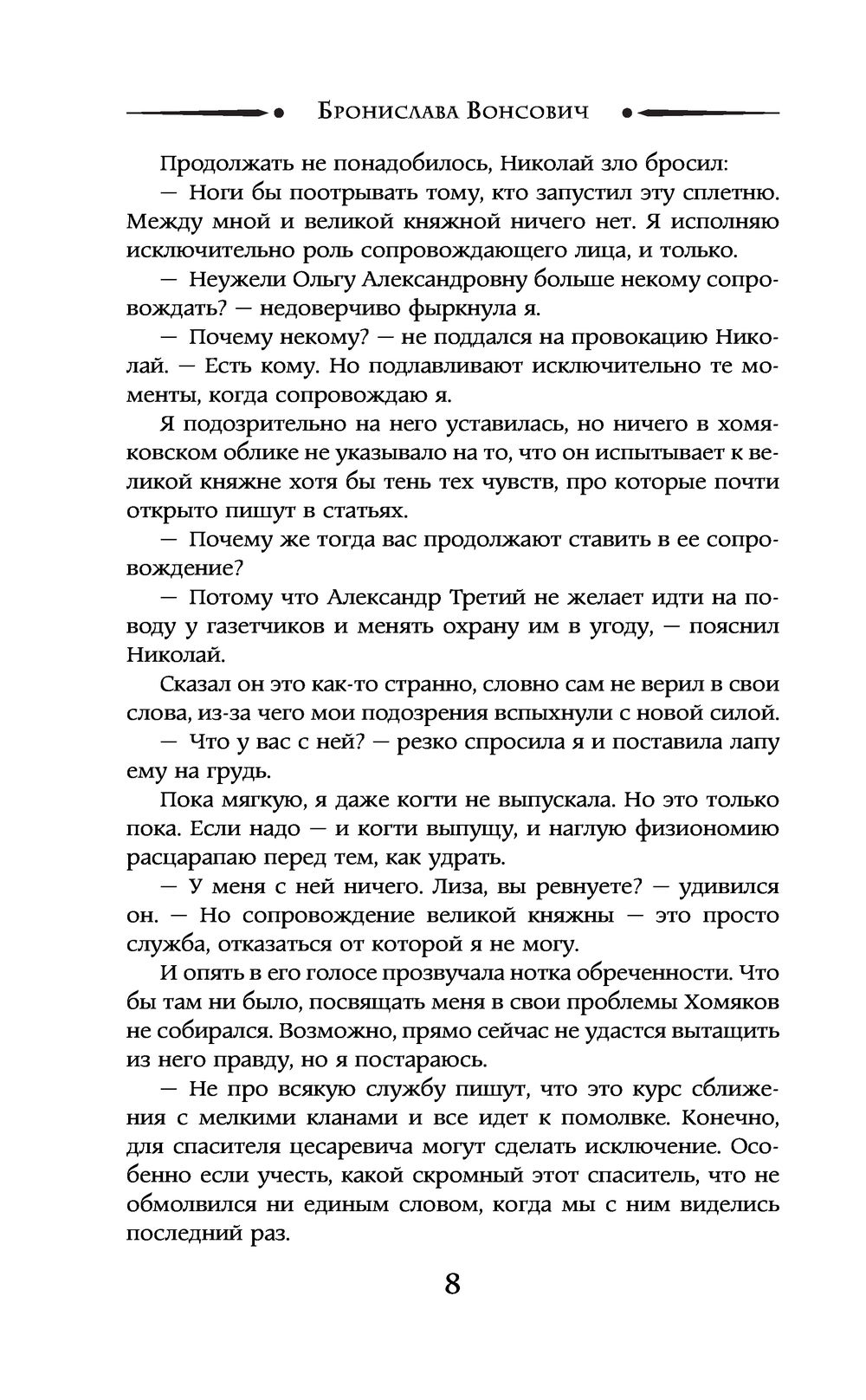 Лиза добралась до Царсколевска. Вот только за ней тянутся проблемы, приставшие как репей к хвосту и цепляющие на себя другие. Княгиня Рысьина желает вернуть контроль над блудной внучкой. Штабс-капитан Волков – заполучить артефакт вместе с девушкой. А великая княжна собирается наложить лапу на Хомякова. Но Лиза уверена, что переиграет их всех. Ведь у нее есть мозги, магия и Зверь. Ой нет, уже два Зверя...