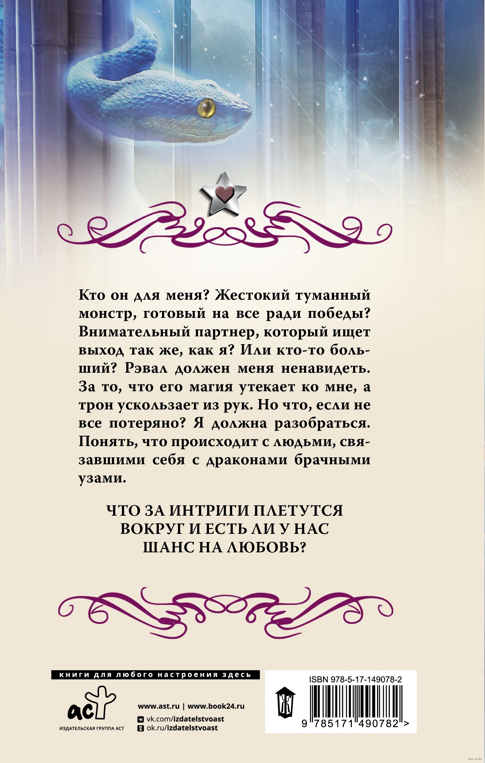 Кто он для меня? Жестокий туманный монстр, готовый на все ради победы? Внимательный партнер, который ищет выход так же, как я? Или кто-то больший? Рэвал должен меня ненавидеть. За то, что его магия утекает ко мне, а трон ускользает из рук. Но что, если не все потеряно? Я должна разобраться. Понять, что происходит с людьми, связавшими себя с драконами брачными узами. Что за интриги плетутся вокруг и есть ли у нас шанс на любовь?