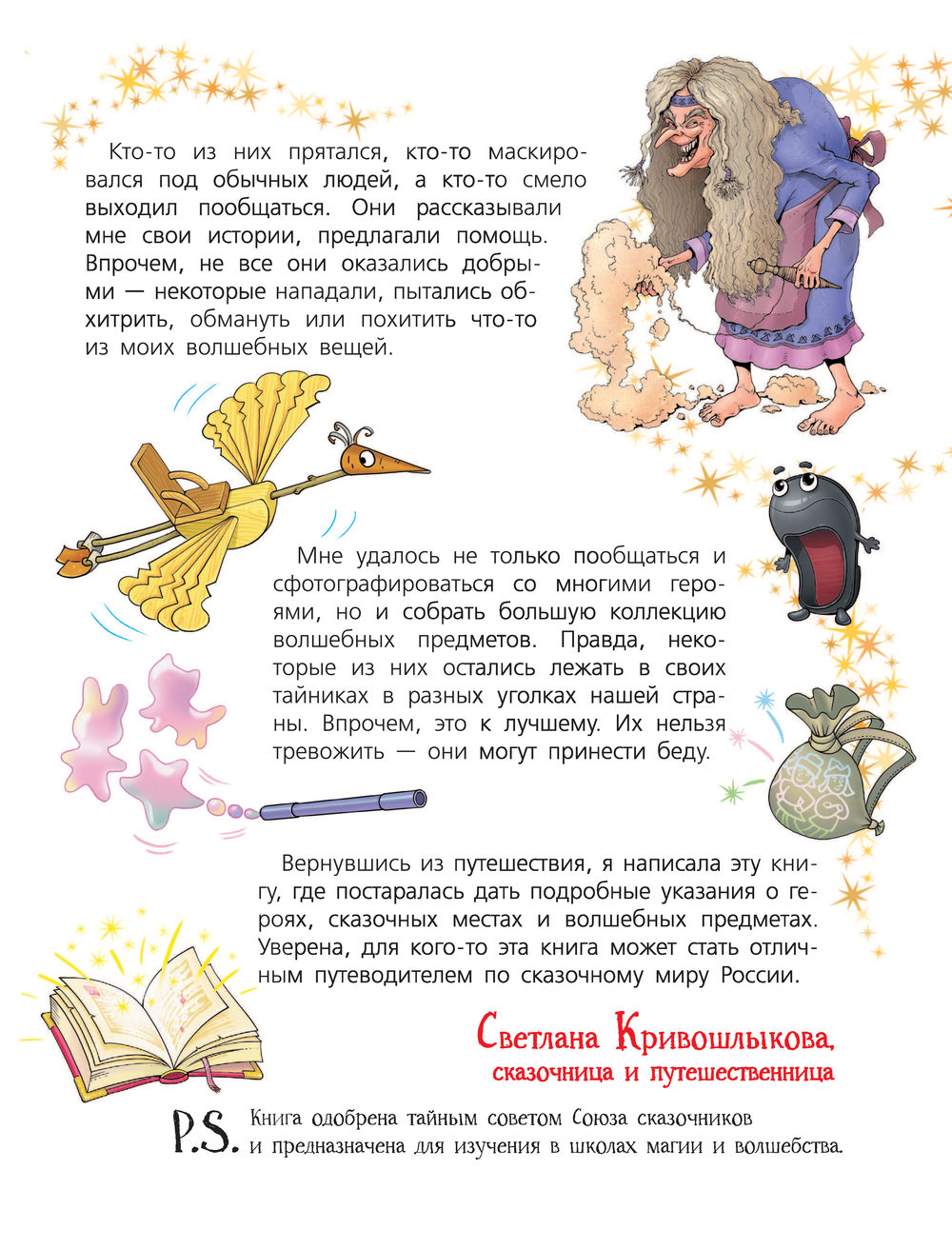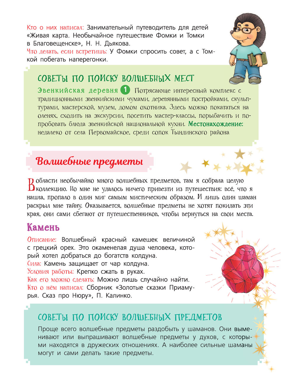 Уникальная сказочная энциклопедия от детской писательницы и путешественницы Светланы Кривошлыковой. Более 200 сказочных героев и волшебных предметов собраны по месту их "рождения" из 85 субъектов Российской Федерации. Кроме того, в книге представлены музеи, парки, усадьбы, резиденции сказочных героев России.