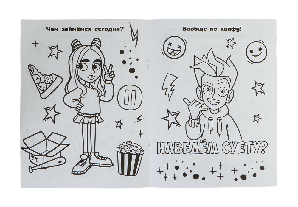 И-и-и... всем привет! Меня зовут Влад А4! Ты держишь в руках суперкрутую раскраску! Ну что, наведём суету? Добавь ярких красок на чёрно-белые страницы и повеселись!