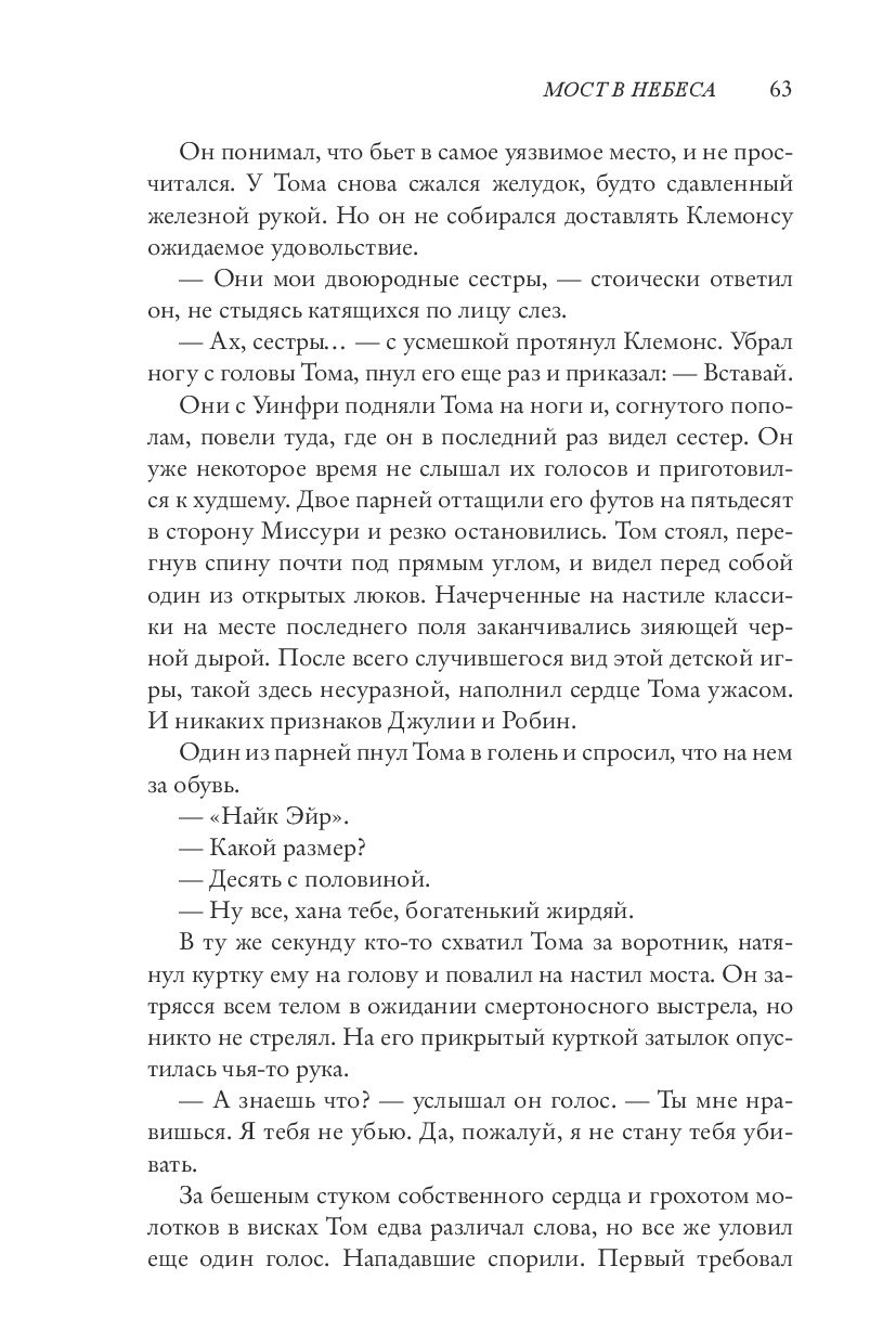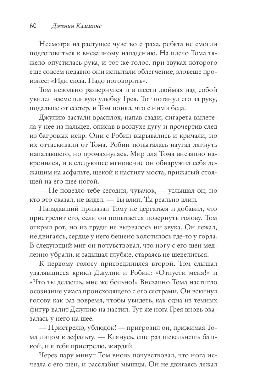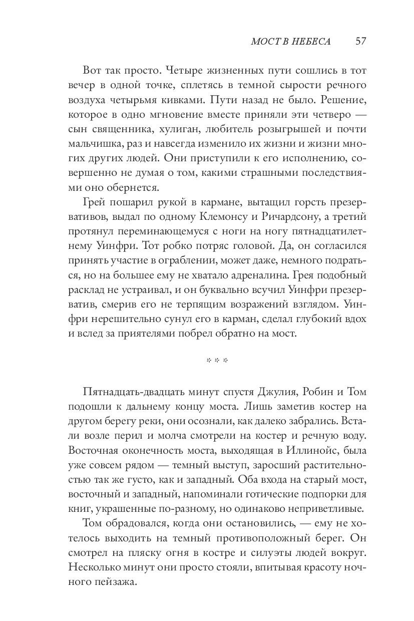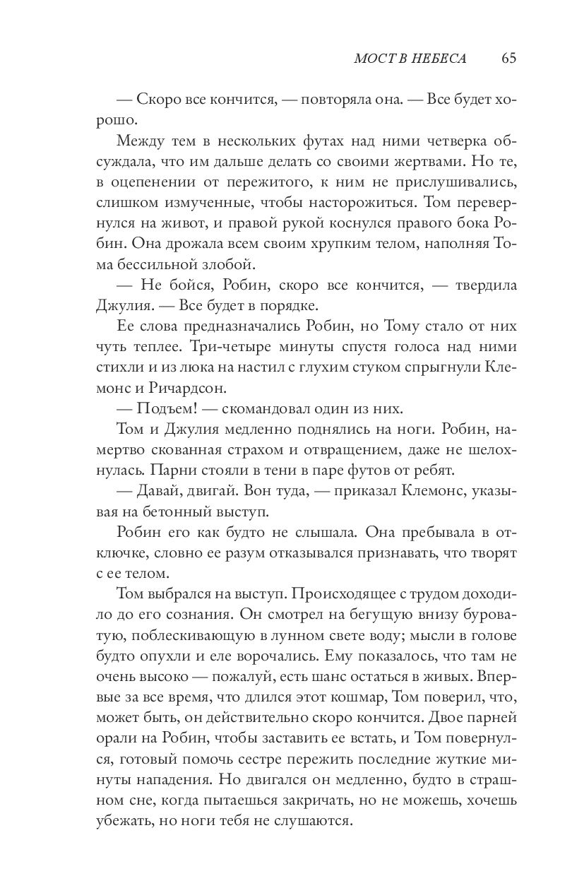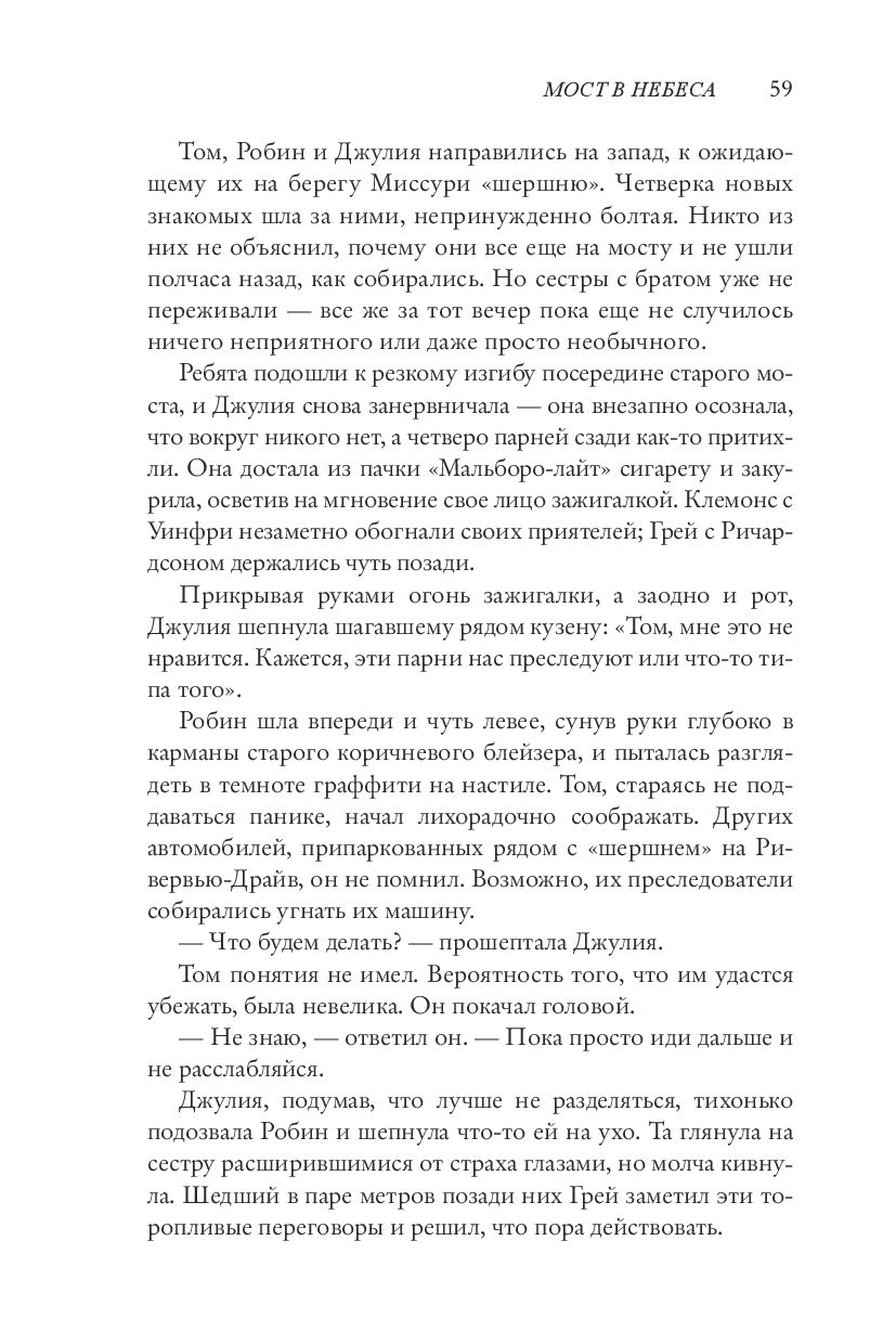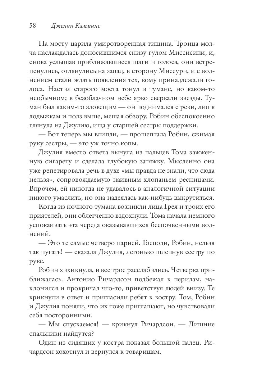 В этом документальном романе Дженин Камминс, автор всемирного бестселлера "Американская грязь", рассказывает о событиях апрельской ночи 1991 года в Сент-Луисе, когда две ее сестры и брат во время прогулки по мосту через Миссисипи подверглись жестокому нападению четверых подонков. В живых остался только брат, которого полиция тут же обвинила в убийстве любимых сестер.