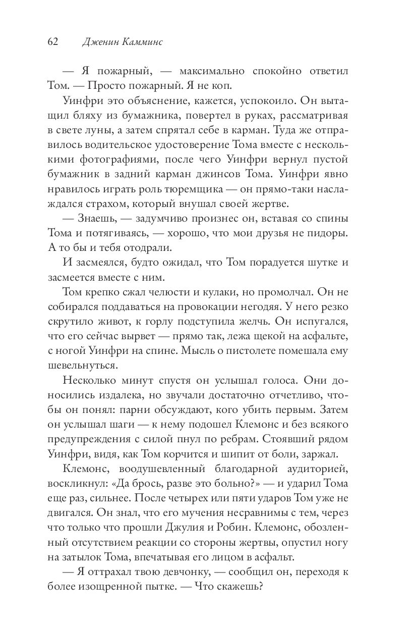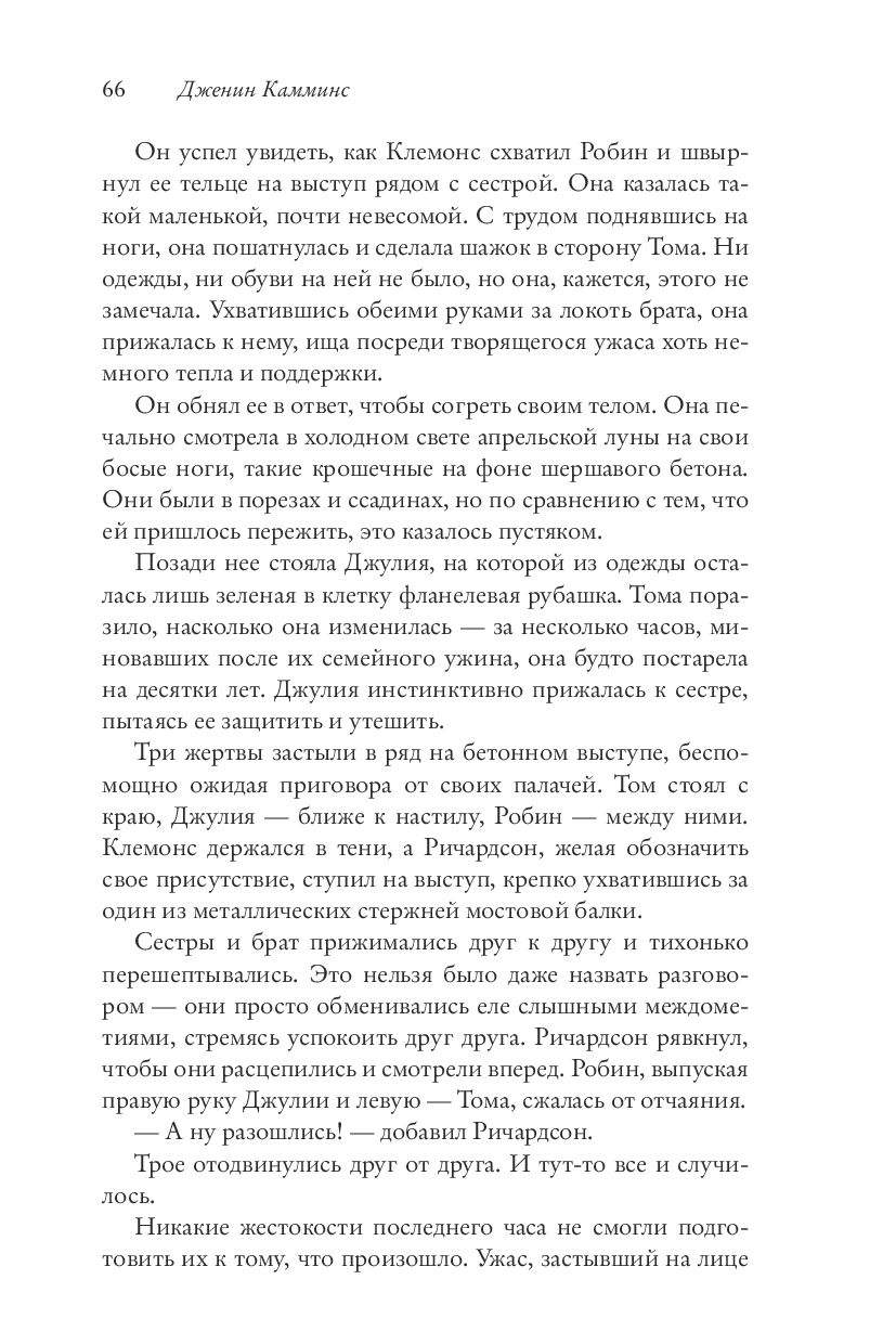 Дженин Камминс тоже была в то время в Сент-Луисе, но осталась дома с другими членами семьи. Она была свидетелем всего произошедшего после, что делает повествование особенно пронзительным и реалистичным. Это рассказ о преступлении и его последствиях – предательстве, преследовании, сокрытии правды, извращении истины... Но прежде всего это рассказ о невероятном мужестве, стойкости и взаимной поддержке членов одной большой прекрасной семьи.
