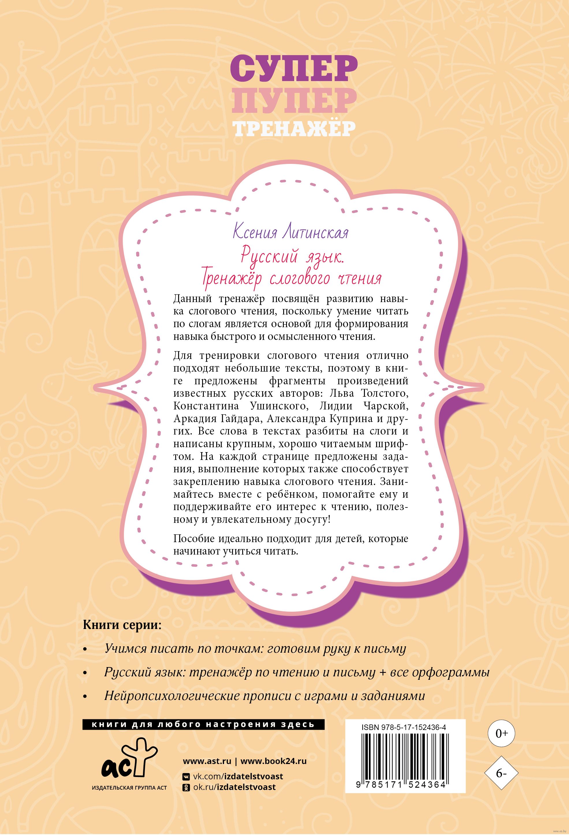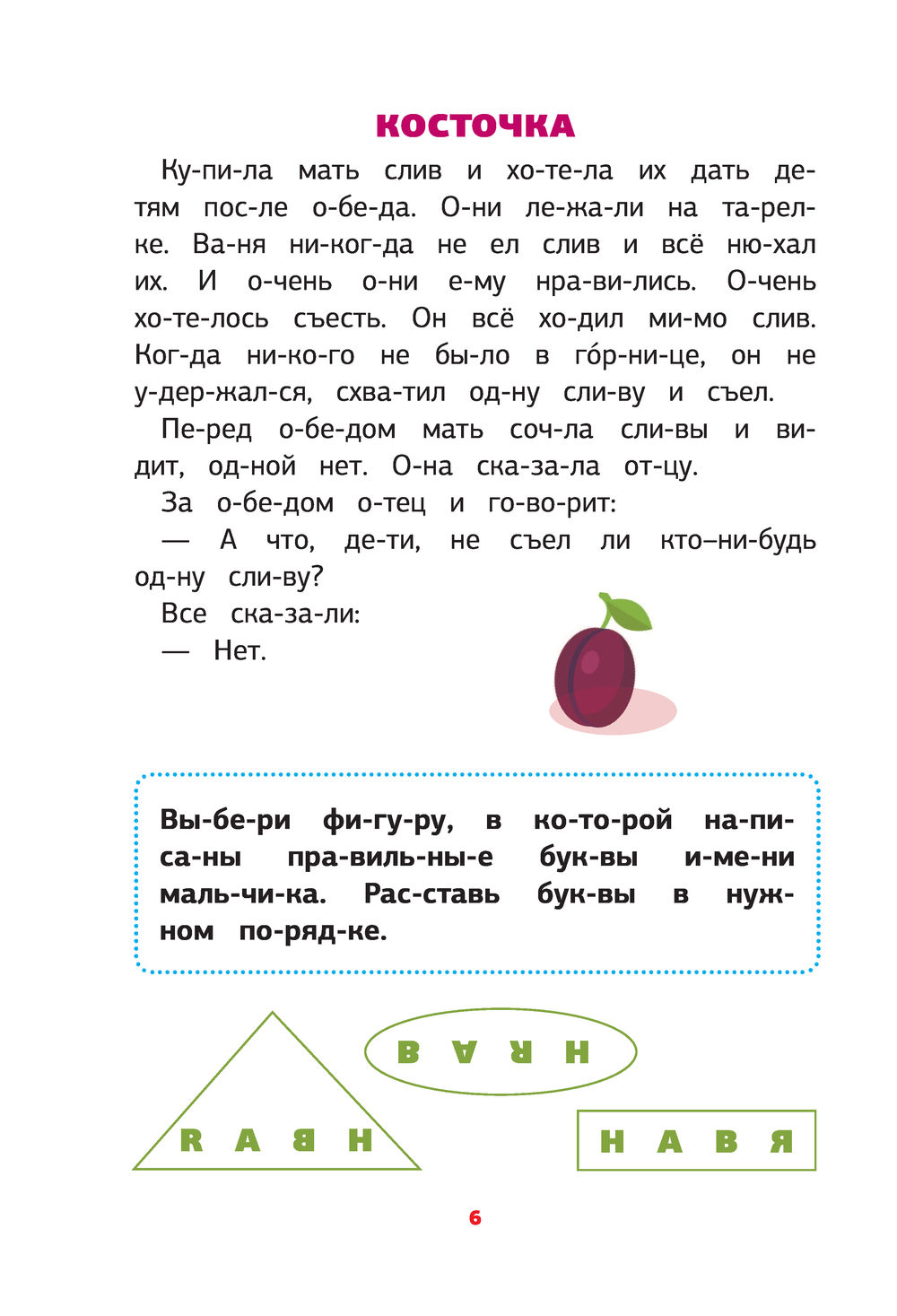 Для тренировки слогового чтения отлично подходят небольшие тексты, поэтому в книге предложены фрагменты произведений известных русских авторов: Льва Толстого, Константина Ушинского, Лидии Чарской, Аркадия Гайдара, Александра Куприна и других. Все слова в текстах разбиты на слоги и написаны крупным, хорошо читаемым шрифтом. На каждой странице предложены задания, выполнение которых также способствует закреплению навыка слогового чтения. Занимайтесь вместе с ребёнком, помогайте ему и поддерживайте его интерес к чтению, полезному и увлекательному досугу!