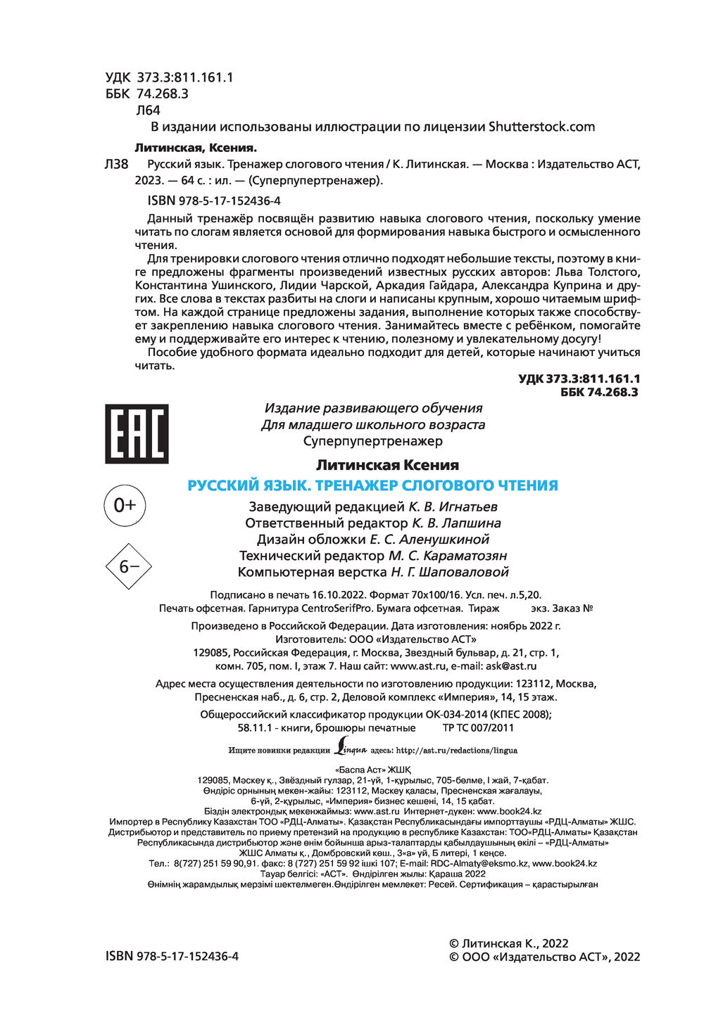 | Изготовитель | Творческое кооперативное объединение «АСТ». 129085, РФ, г. Москва, б-р Звездный, 21, стр. 1 |