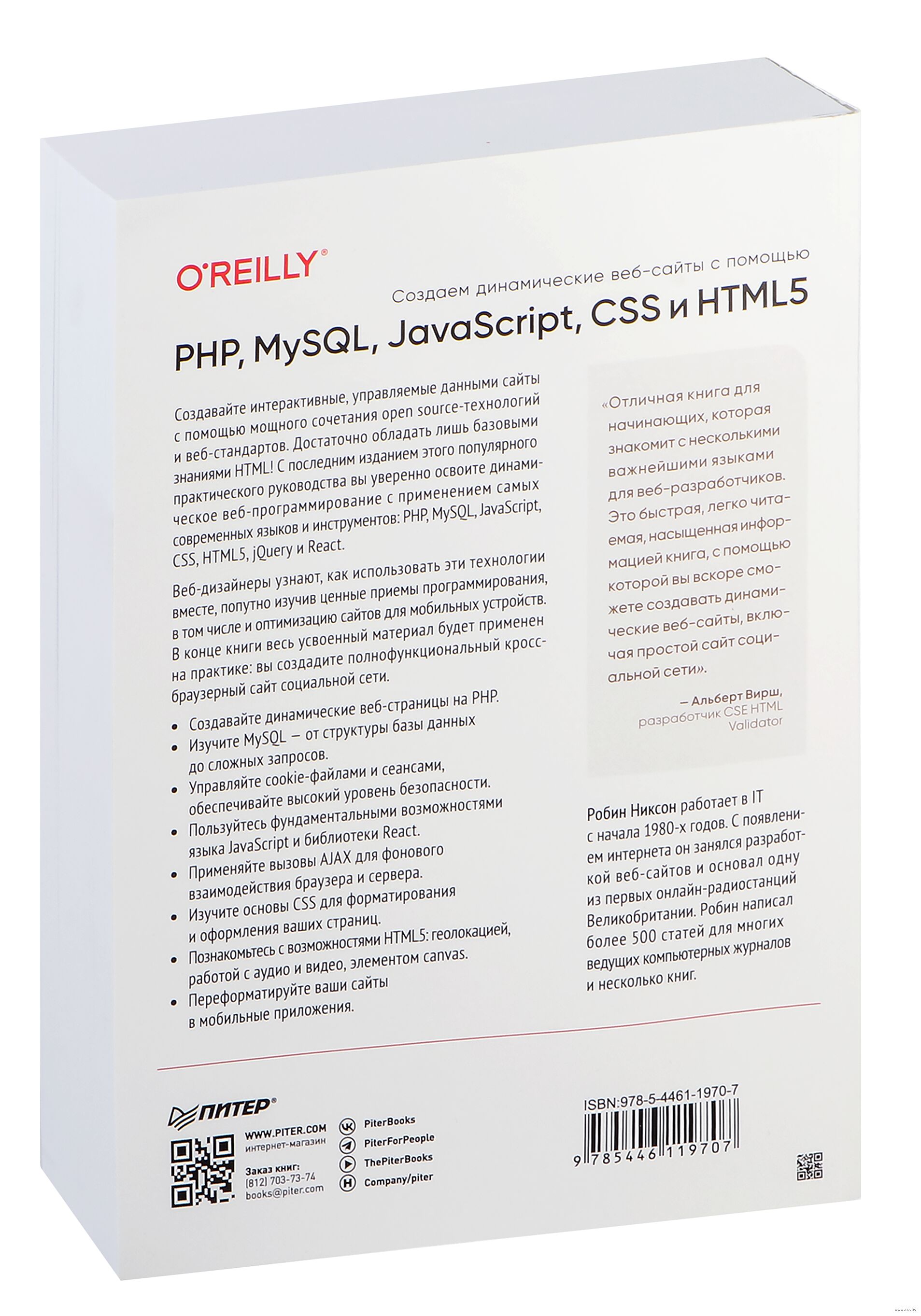 Новое издание бестселлера описывает как клиентские, так и серверные аспекты веб-разработки. Книга, наполненная ценными практическими советами и подробным теоретическим материалом, поможет вам освоить динамическое веб-программирование с применением самых современных технологий. Для закрепления усвоенных знаний автор расскажет, как создать полнофункциональный сайт, работающий по принципу социальной сети.
