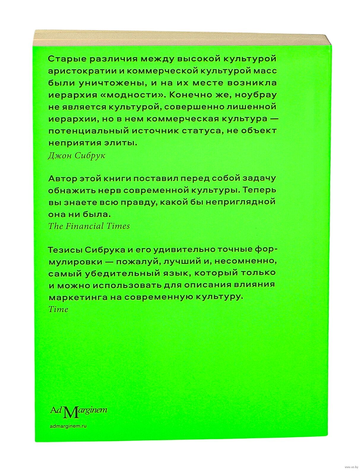Как изменился культурный ландшафт после появления глобального супермаркета? Что произошло с современным искусством после Энди Уорхола, с поп-музыкой – после Nirvana и MTV, с кино – после "Звездных войн"? И так ли важны сегодня, когда лейбл на вашей майке ценнее ее фасона, старые понятия вкуса и стиля? Ответы на эти вопросы предлагает в своей книге Джон Сибрук, колумнист журналов The New Yorker, Harper's Bazaar, GQ, Vanity Fair, Vogue, а также газеты The Village Voice. Его исследование – путеводитель по современной культуре, в которой информационный шум оказывается важнее самого события, качество равно актуальности, и уже никто не в состоянии отделить продукт от его позиционирования, а культурную ценность – от рыночной стоимости. Добро пожаловать в мир Nobrow – мир, в котором вы уже давно живете, хотя и боитесь себе в этом признаться!