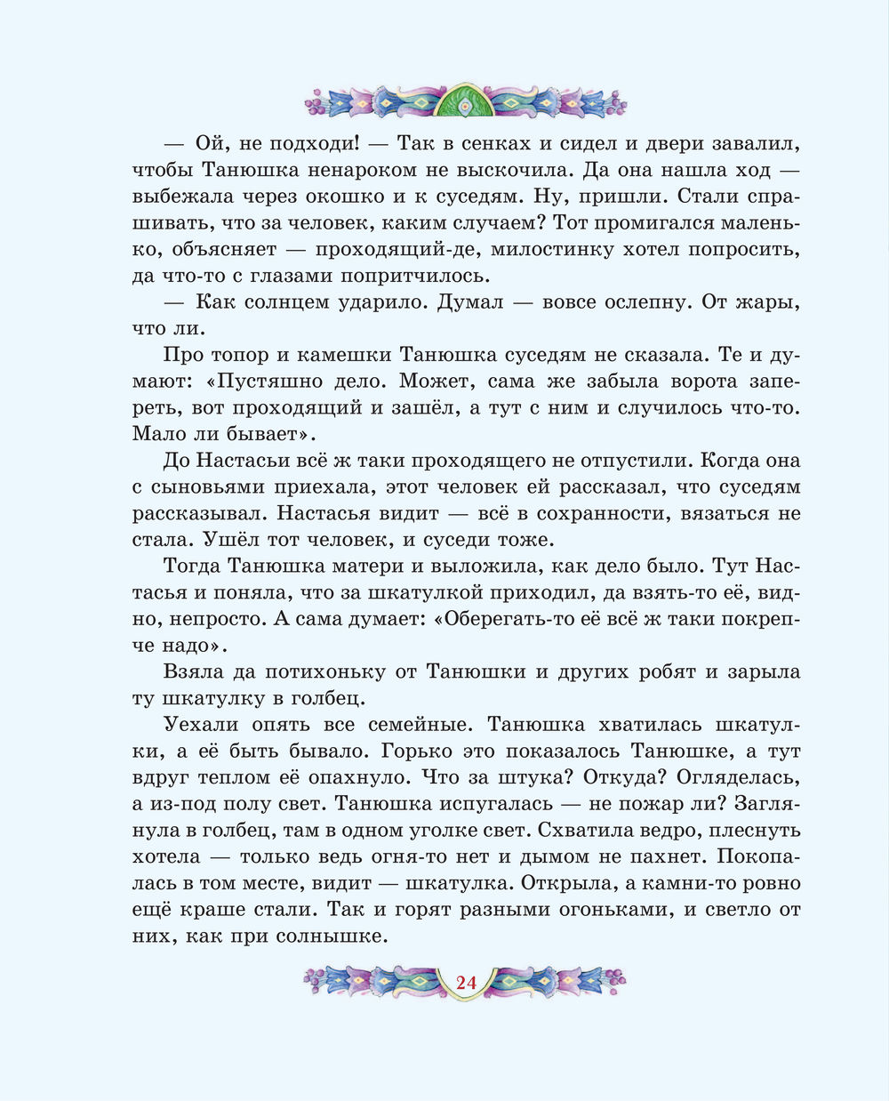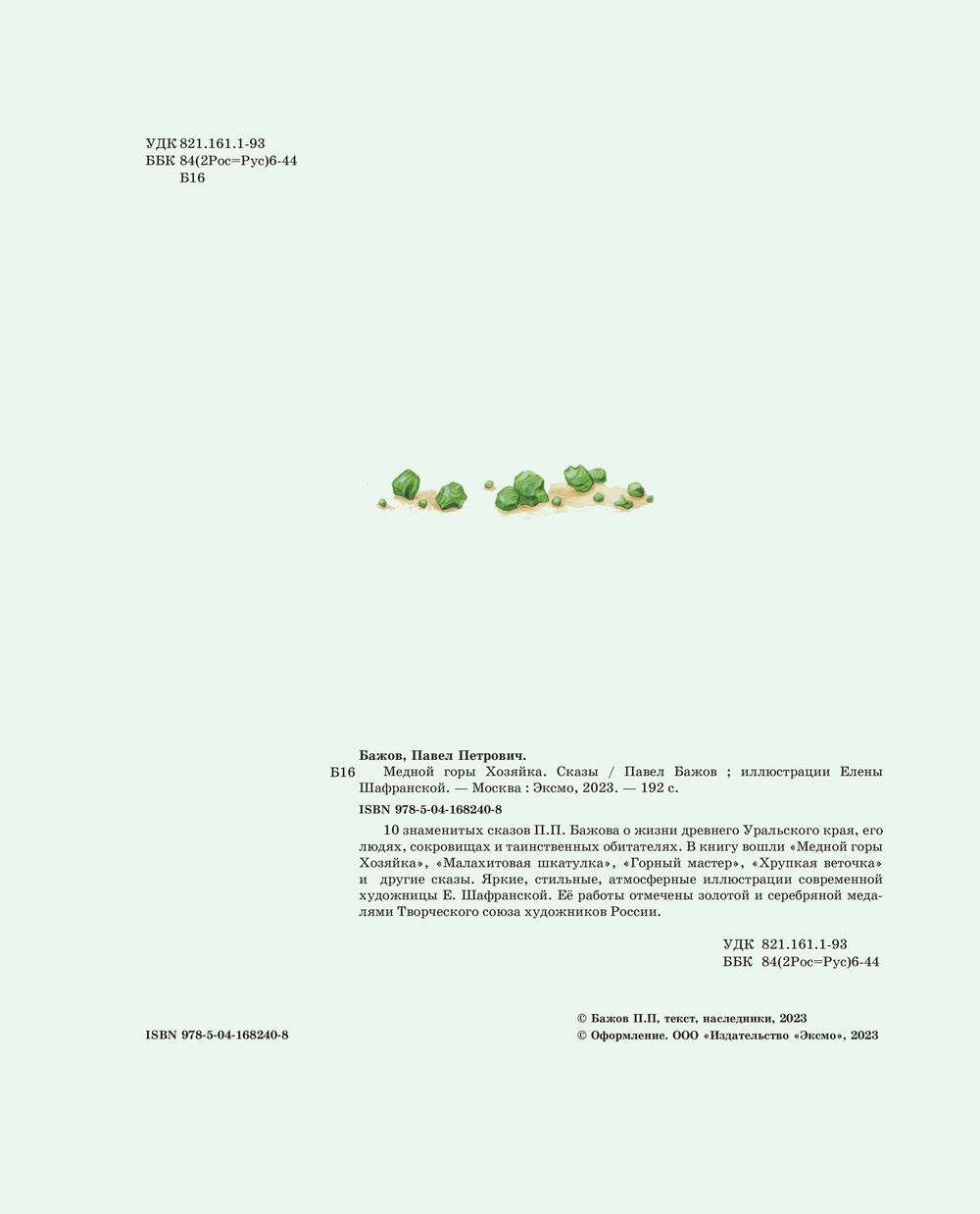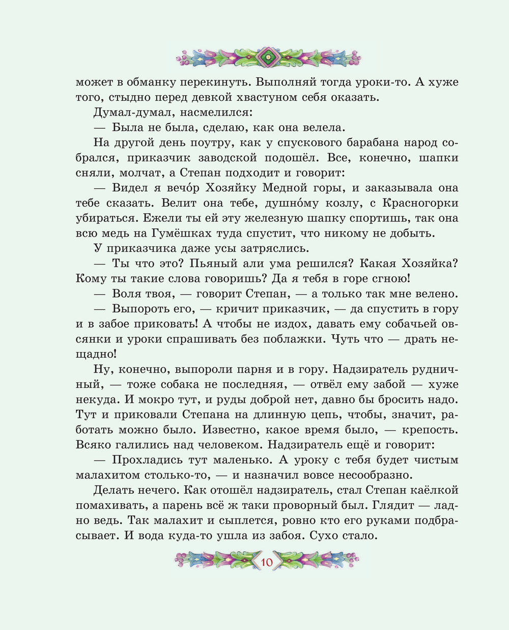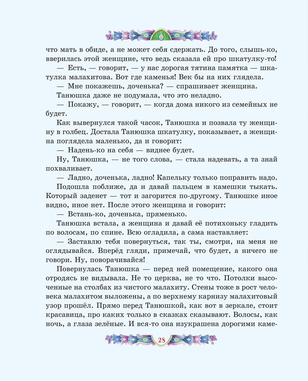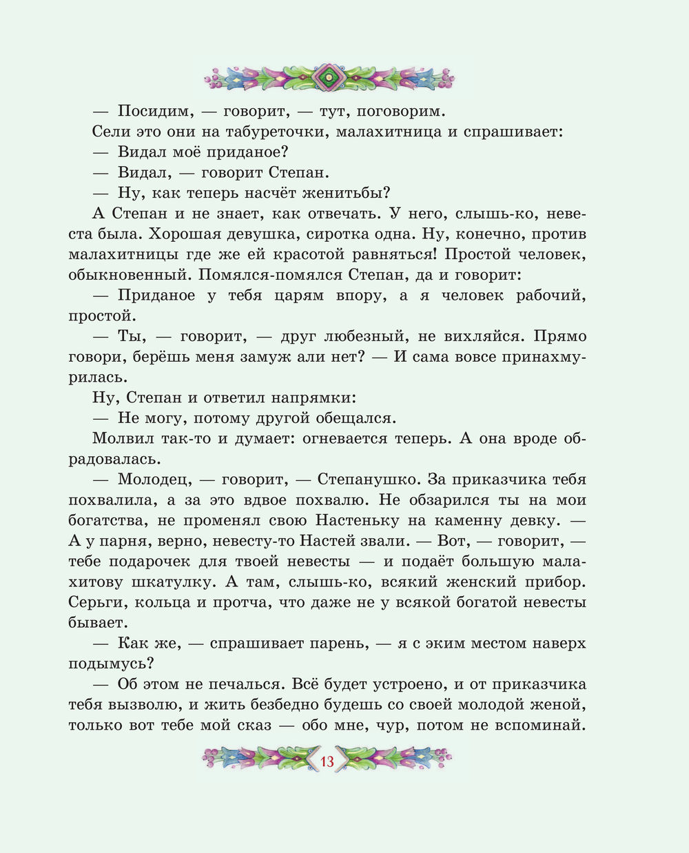Перелистывая страницы, мы словно перебираем в руках драгоценные самоцветы: примеряем украшения из малахитовой шкатулки, отправляемся в подземное царство, мечтаем отыскать небывалый Каменный цветок. Среди десяти сказов-самоцветов непременно будет тот, что создан именно для вас. И подарит его сама Хозяйка Медной горы.