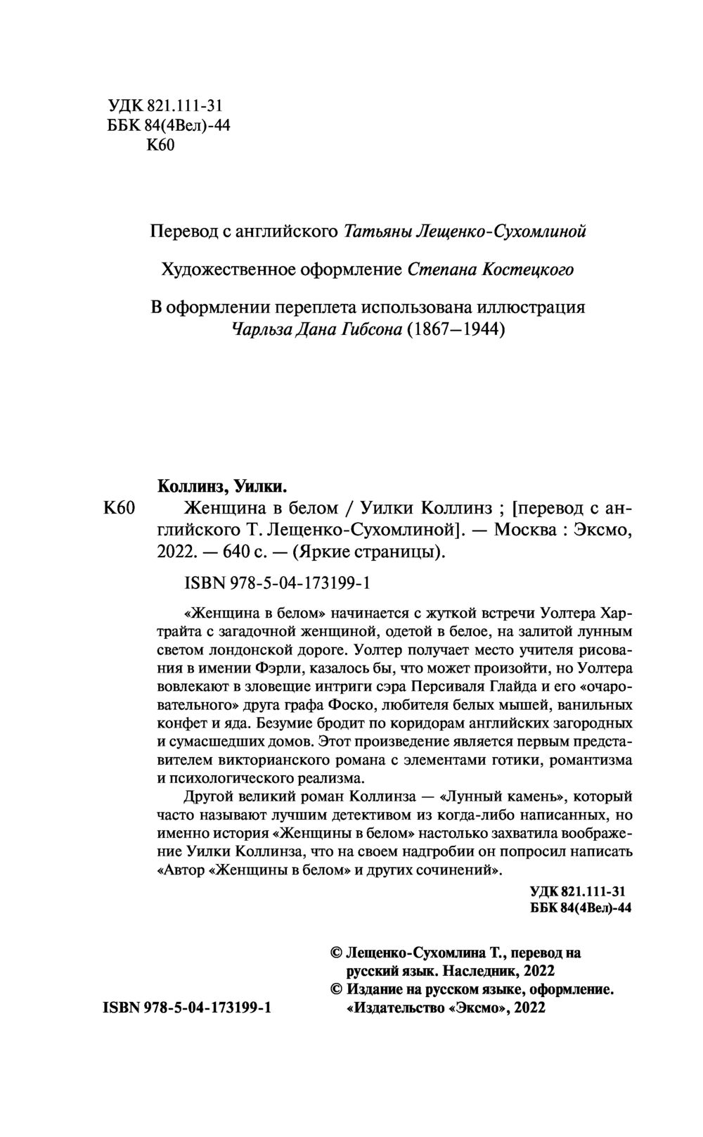 Другой великий роман Коллинза – "Лунный камень", который часто называют лучшим детективом из когда-либо написанных, но именно история "Женщины в белом" настолько захватила воображение Уилки Коллинза, что на своем надгробии он попросил написать: "Автор "Женщины в белом" и других сочинений".