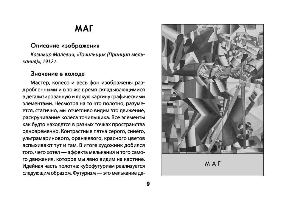 Отобранные автором картины выстроены так, чтобы взявший колоду в руки смог использовать весь потенциал символического осмысления мира и поменять направление своей судьбы.
