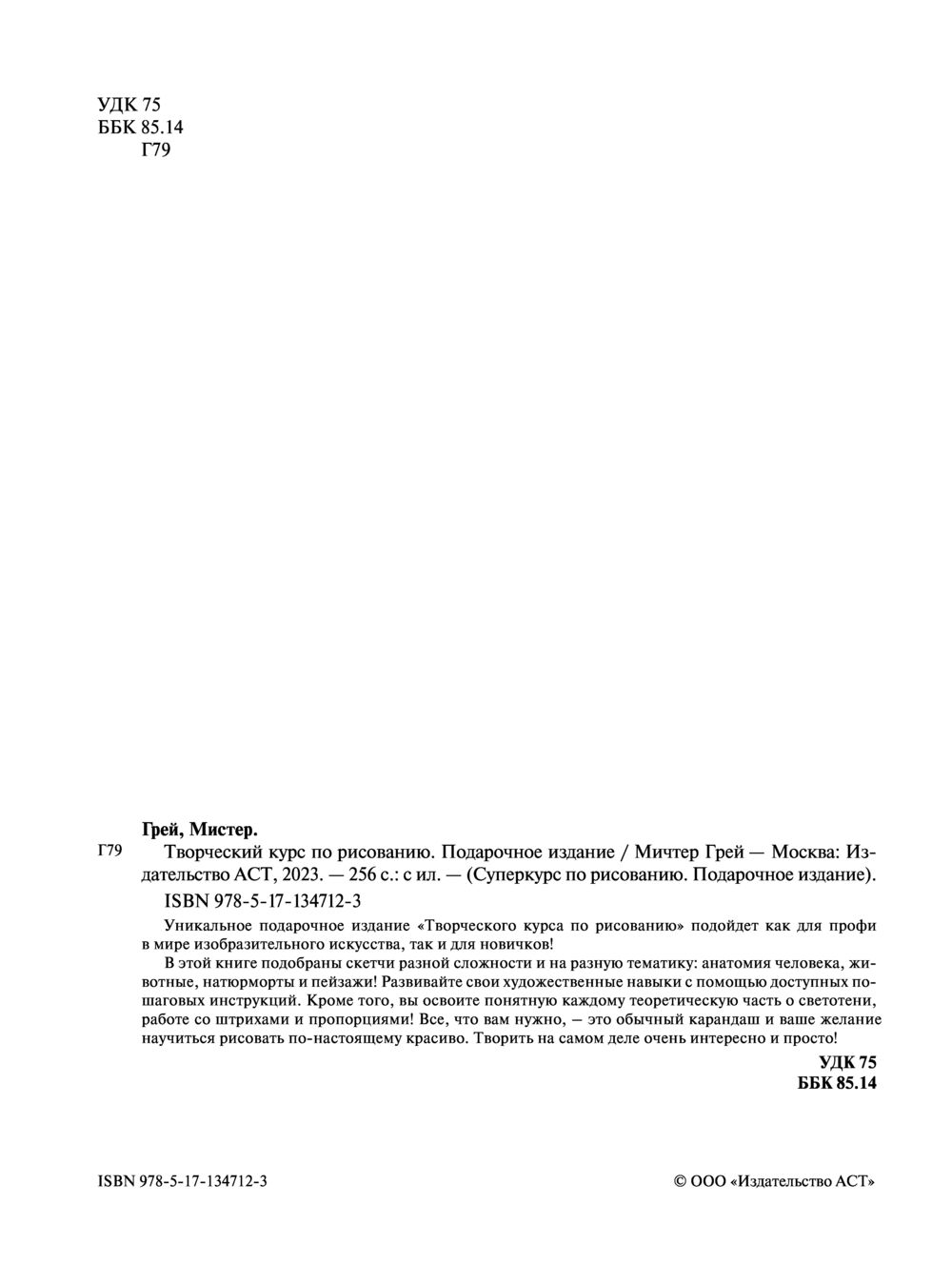 Уникальное подарочное издание "Творческого курса по рисованию" подойдет как для профи в мире изобразительного искусства, так и для новичков! В этой книге подобраны скетчи разной сложности и на разную тематику: анатомия человека, животные, натюрморты и пейзажи! Развивайте свои художественные навыки с помощью доступных пошаговых инструкций. Кроме того, вы освоите понятную каждому теоретическую часть о светотени, работе со штрихами и пропорциями! Все, что вам нужно, – это обычный карандаш и ваше желание научиться рисовать по-настоящему красиво. Творить на самом деле очень интересно и просто!