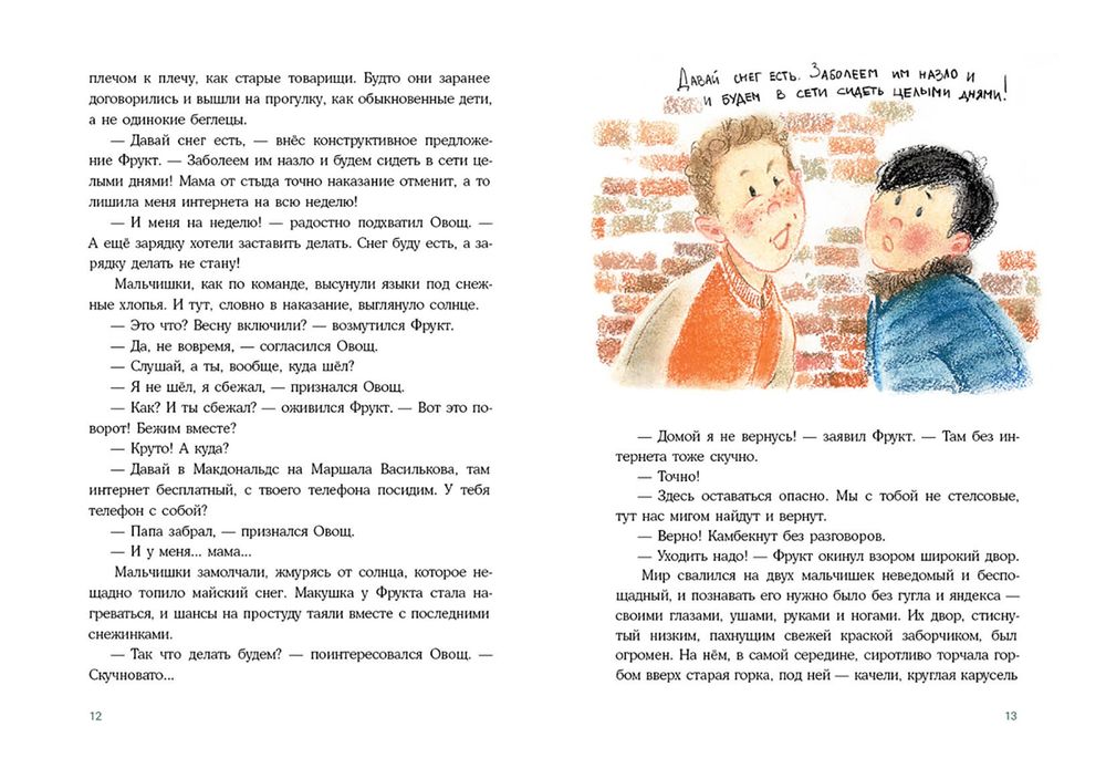 Юра Фрукт и Вова Овощ живут на одном этаже, но раньше никогда не общались. Но сегодня какой-то совершенно неудачный и во всех отношениях необычный день. Именно сегодня, когда пошёл майский снег, Вова решил уйти из дома, а Юру на целую неделю лишили интернета! Пришлось соседям познакомиться ближе и отправиться на поиски приключений. Вместе они решили найти таинственного Коллекционера интересов. Говорят, он знает, как решить проблему с родителями и интернетом.