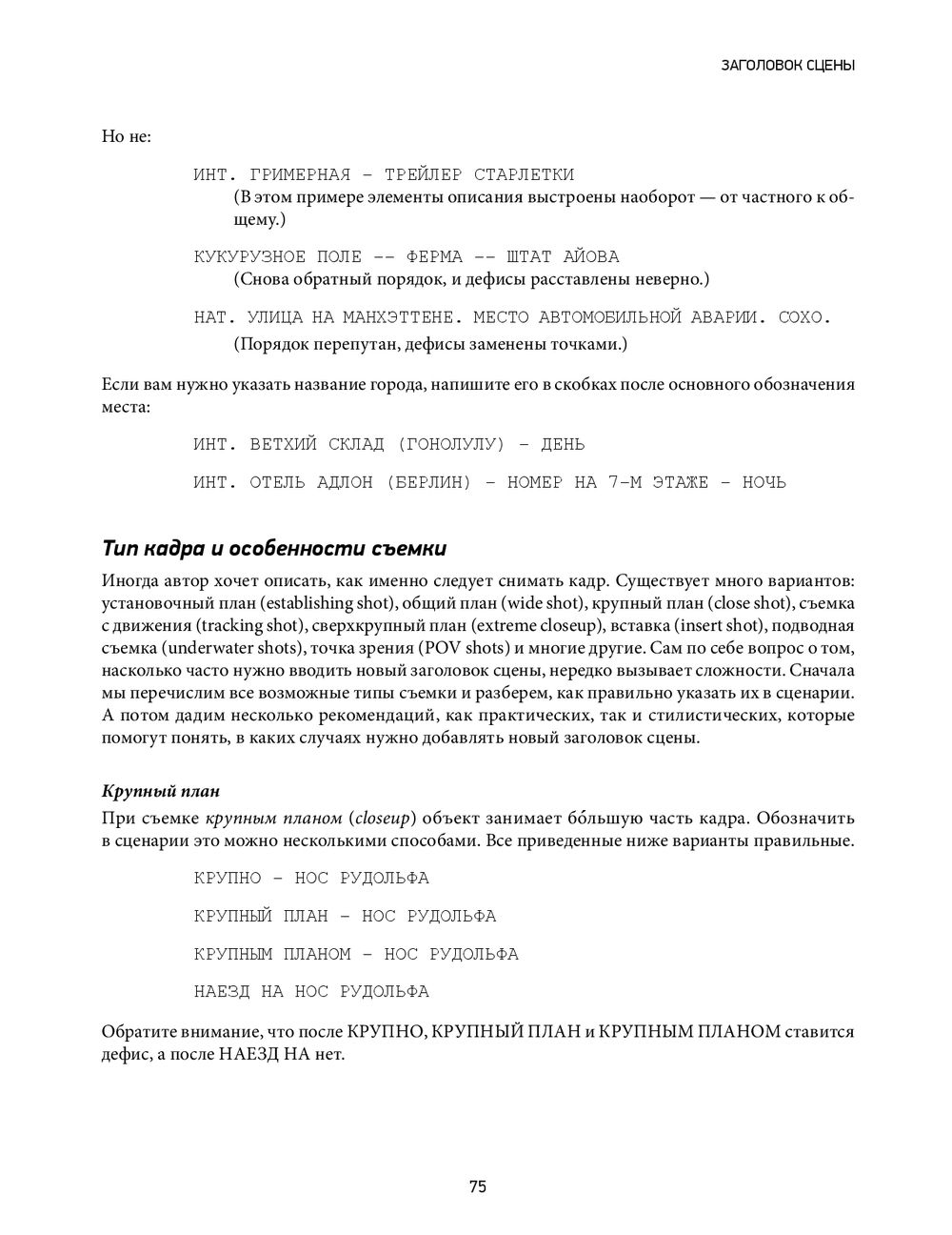 Кристофер Райли – профессиональный сценарист, который руководил отделом обработки сценариев Warner Bros., – знает о голливудском стандарте больше, чем кто-либо в киноиндустрии. В своей книге он подробно рассказывает обо всех правилах сценарного формата и объясняет, как воплотить в тексте любые визуальные образы, родившиеся у вас в голове. Четкие и понятные инструкции и сотни примеров помогут разобраться во множестве вопросов, которые ставят в тупик даже опытных сценаристов: