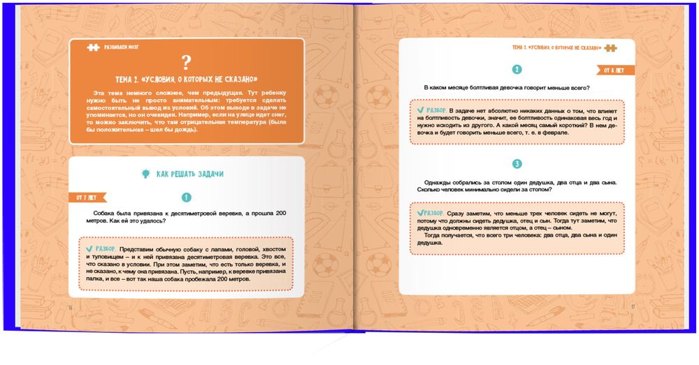 Большинство крупных корпораций, такие как Apple, Google и Facebook проверяют соискателей на умение решать логические задачи. Почему? Потому что информация в современном мире быстро устаревает и на первое место выходит навык логического мышления и умение мыслить нестандартно. Как развить эти способности у ребенка и сделать это в весело? Особенно если умение решать логические задачи не является сильной его стороной, а любые необычные вопросы вызывают реакцию "я не смогу". Вам поможет эта книга. Она научит ребенка строить логические выводы и искать выходы из нестандартных ситуаций. Это повысит его уверенность в себе и очень пригодится в будущем.