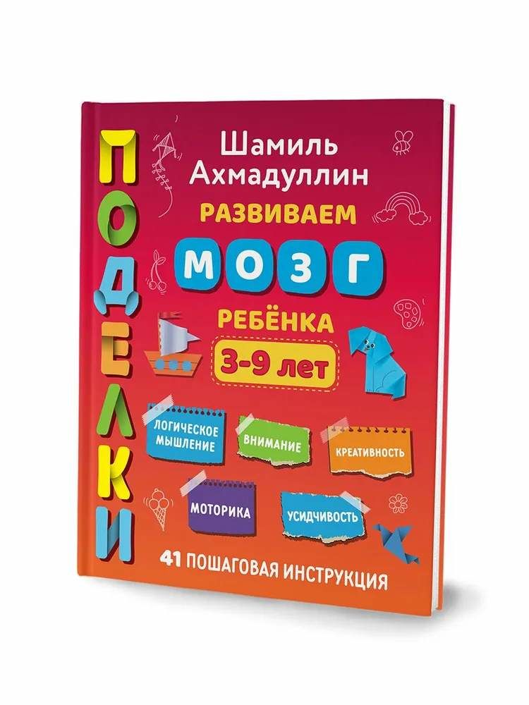 Книга-пособие Шамиля Ахмадуллина для развития мозга через создание поделок. Отлично подойдет для детей младшего возраста 3, 4, 5 и 6 лет и старшего – 7, 8 и 9 лет, тк сложность заданий увеличивается с каждой поделкой. Пособие содержит простые и понятные инструкции по созданию 41 поделки. Ребенок сможет заниматься самостоятельно, без помощи родителей.