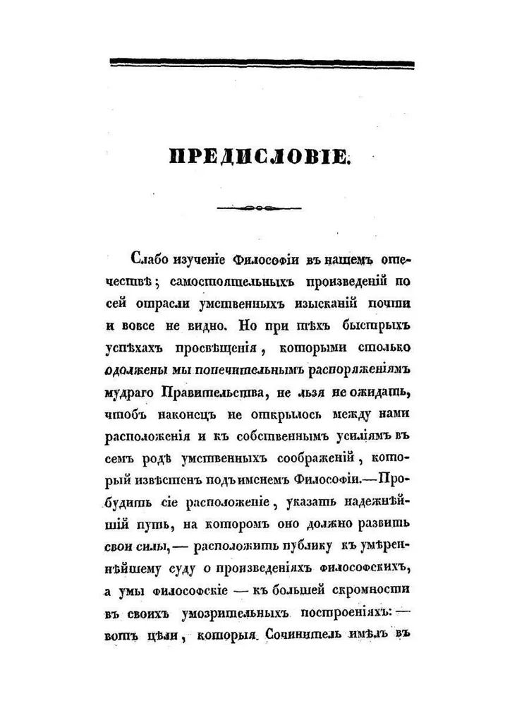 Пробудить расположение к науке философии, указать надежнейший путь, на котором оно должно развить свои силы, расположить публику к умереннейшему суду о произведениях философских, а умы философские – к большей скромности в своих построениях – вот цели, которые сочинитель сего труда имел в виду.