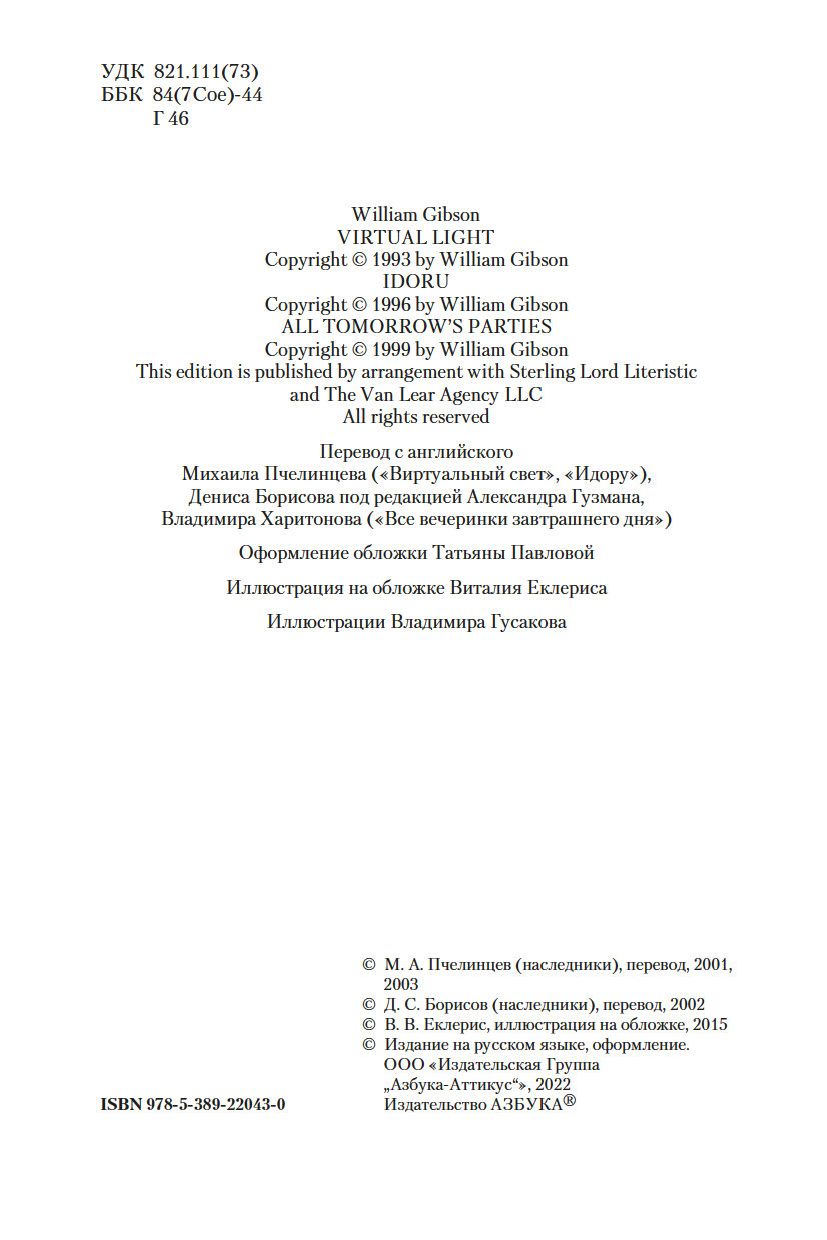 | Название в оригинале | Virtual Light. Idoru. All Tomorrow's Parties |