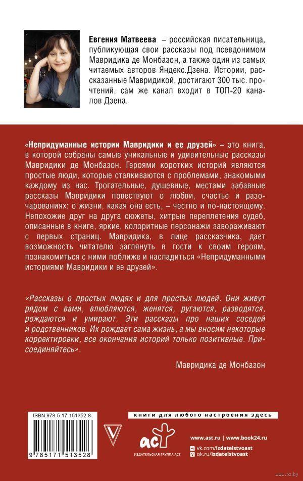 "Непридуманные истории Мавридики и ее друзей" – это книга, в которой собраны самые уникальные и удивительные рассказы. Героями коротких историй являются простые люди, которые сталкиваются с проблемами, знакомыми каждому из нас. Трогательные, душевные, местами забавные рассказы Мавридики повествуют о любви, счастье и разочарованиях: о жизни, какая она есть – честно и по-настоящему. Непохожие друг на друга сюжеты, хитрые переплетения судьбы, описанные в книге, яркие, колоритные персонажи завораживают с первых страниц.