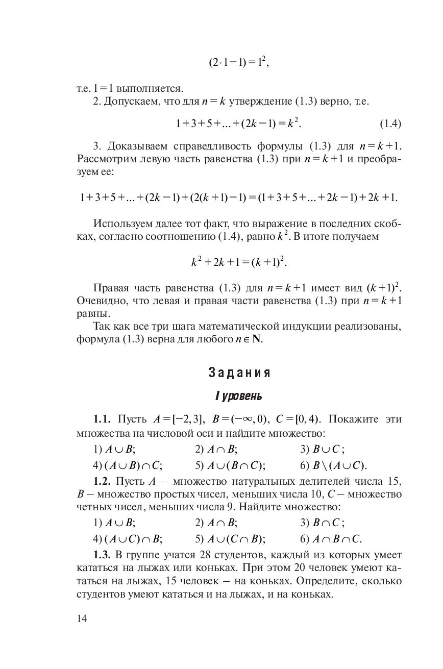Содержатся теоретические сведения, решения типовых примеров и задания трех уровней сложности по линейной и векторной алгебре, аналитической геометрии, математическому анализу и дискретной математике.