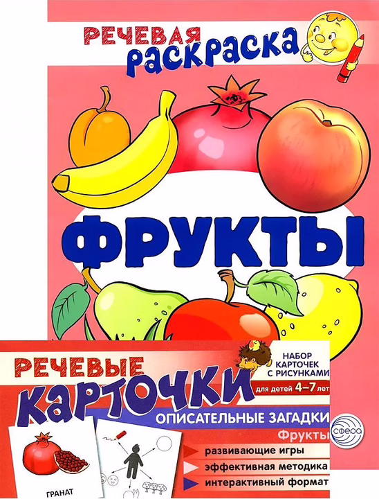 В речевой раскраске "Фрукты" собрана целая коллекция интересных заданий: