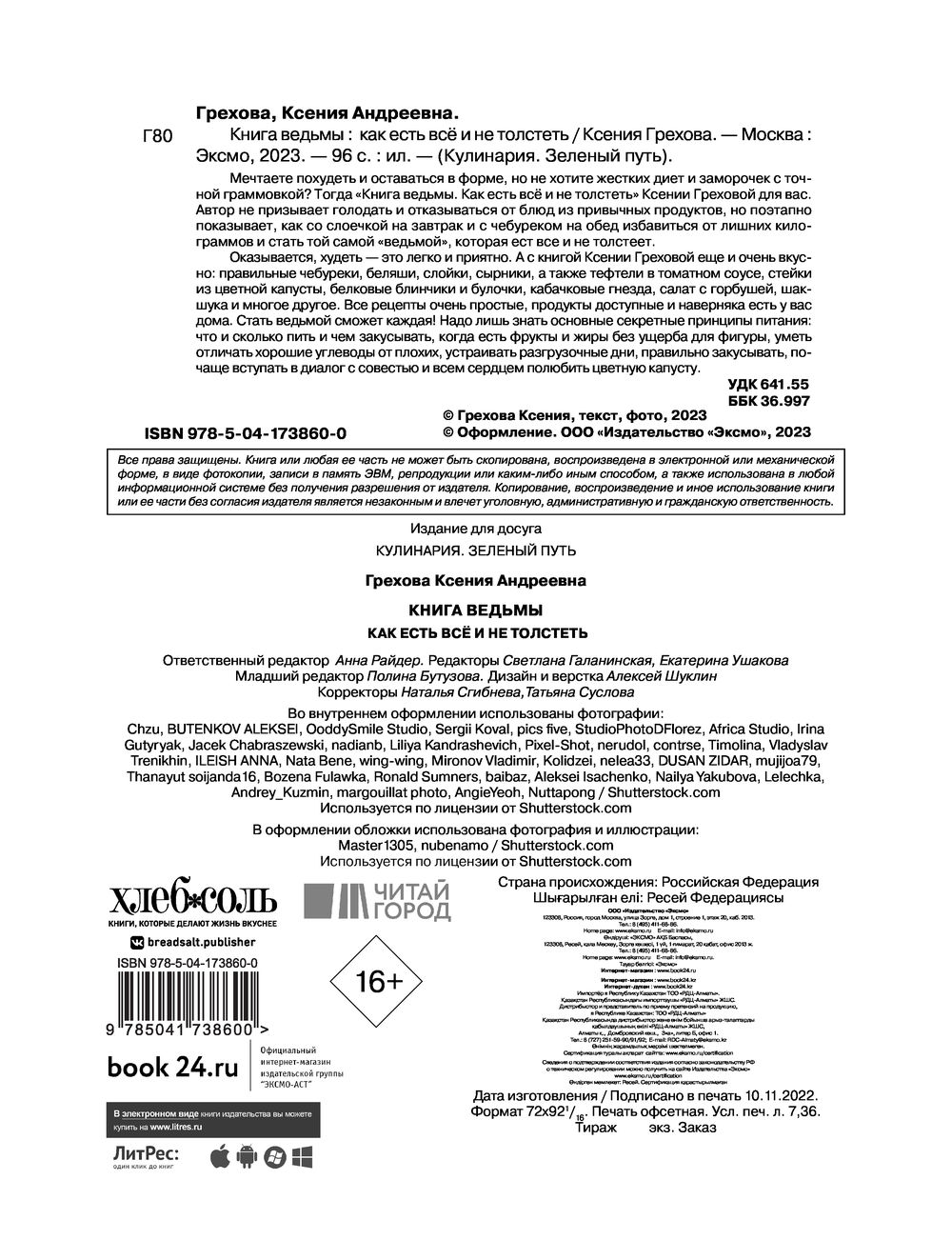 ПП без фанатизма – это то, что вы так долго искали! Ксения Грехова в своей "Книге ведьмы. Как есть ВСЁ и не толстеть" учит избавляться от лишнего веса без стресса и выхода из зоны комфорта. Да, такое возможно! Все наверняка слышали о "ведьмах", которые едят все и не толстеют. Ксения Грехова предлагает стать такой "ведьмой" без особых диет и жестких ограничений. Уже более миллиона подписчиков автора в соцсетях опробовали ее принцип питания: можно позволить себе самые любимые блюда, только надо правильно их готовить. Правильные чебуреки, беляши, слойки, шаурма, сырники, белковые блинчики и булочки, мясо по-французски, салаты и многое другое – да-да, все это поможет оставаться стройной. Быть ведьмой отныне легко и приятно. Можно даже не изнурять себя физическими нагрузками – по рецептам Ксении вы все равно похудеете. Вместе с этой книгой вы получите не только разнообразное, простое и очень вкусное меню, но и основные принципы построения рациона, и вдохновение для творчества.
