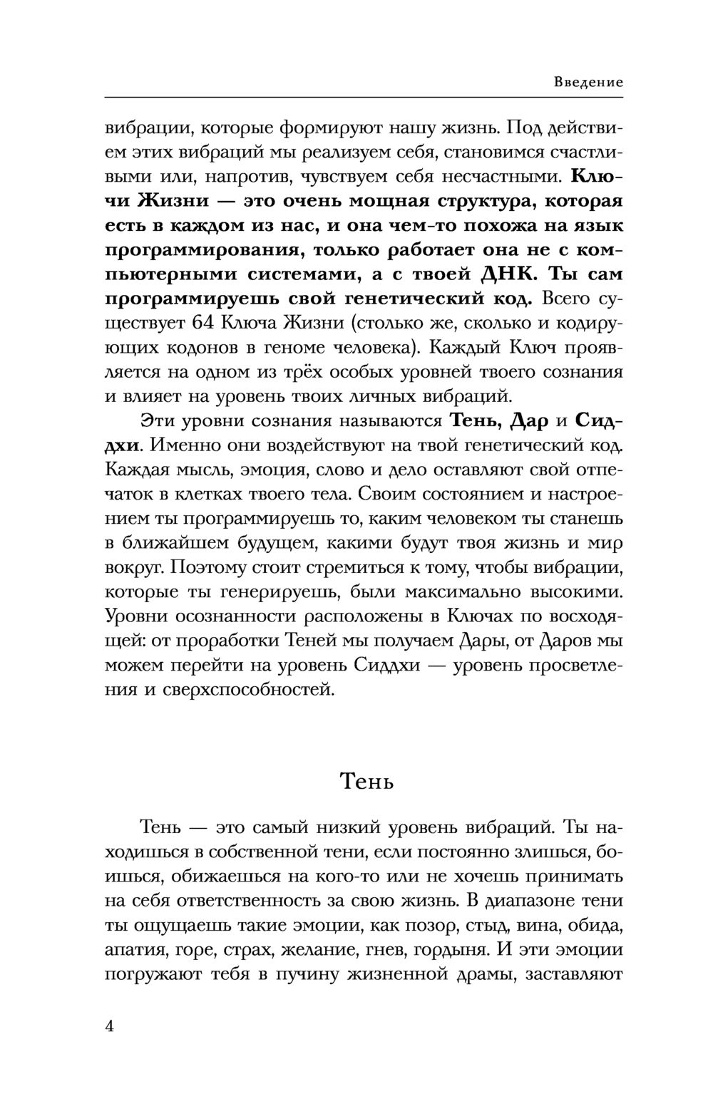 Ключи Жизни – это высшие цели, зашитые в самой нашей ДНК. Работая с этими ключами, мы можем проявлять то, что предназначено нам самой Вселенной, которая безусловно умна, бесконечно добра и полна возможностей, главное – вибрировать с ней на одной частоте. Каждый человек может самостоятельно творить свою Жизнь, влияя на ДНК через Ключи Жизни, а значит, может создать свое счастье. Запомни одну простую вещь: изменения вокруг начинаются с изменений в твоем сознании!