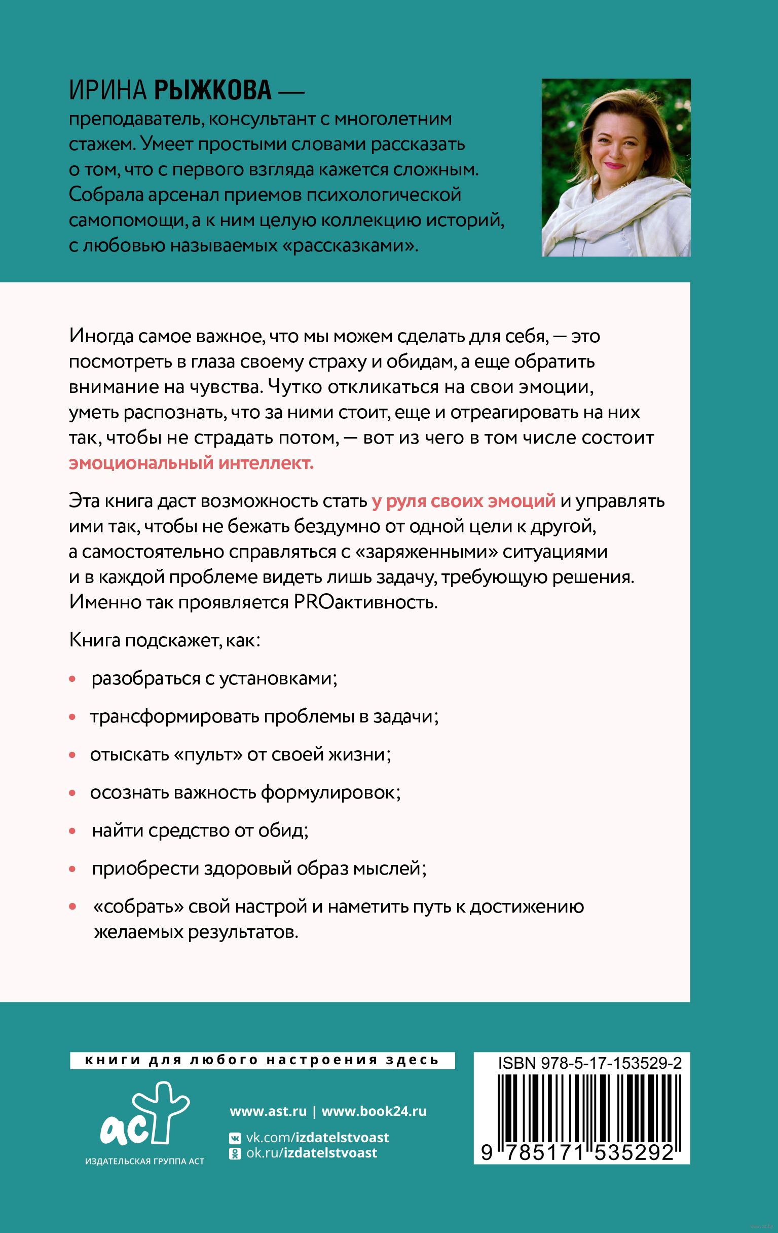 Книга "Эмоциональный интеллект: кто рулит твоими эмоциями" даст возможность стать у руля своих эмоций и управлять ими так, чтобы не бежать бездумно от одной цели к другой, а самостоятельно справляться с "заряженными" ситуациями и в каждой проблеме видеть лишь задачу, требующую решения. Именно так проявляется PROактивность.