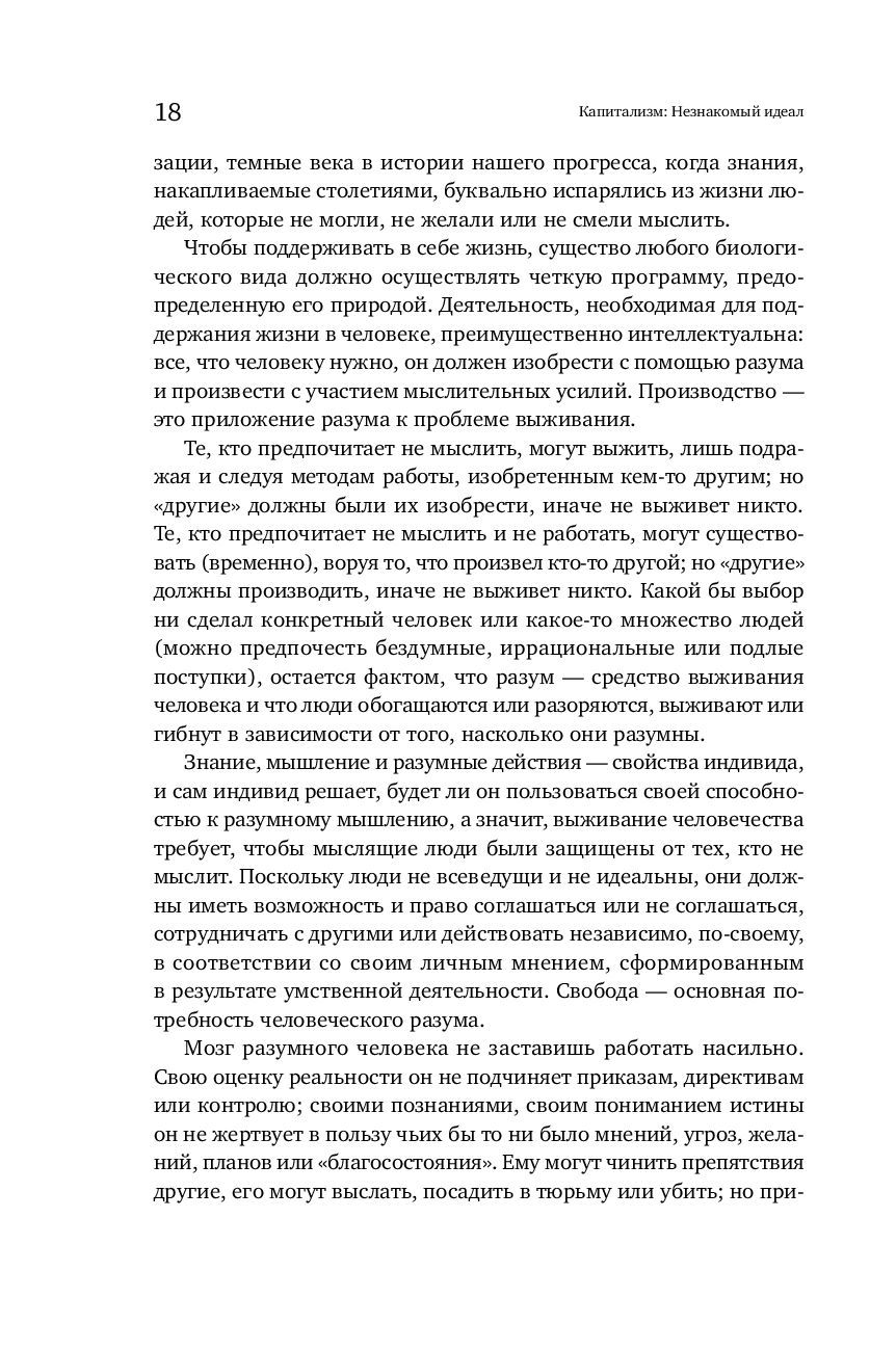 Книга "Капитализм. Незнакомый идеал" представляет собой сборник статей, написанных Айн Рэнд в разные годы, которые и сегодня поражают своей злободневностью, остротой и убедительностью. В них автор на реальных примерах из общественной, политической и экономической жизни блестяще доказывает основной посыл своей философии: человека может сделать свободным и счастливым только система, ставящая во главу угла личность, система, основанная на рациональности, свободном обмене идеями и товарами, а именно – капитализм. А значит – только такую систему можно считать нравственной, и любые идеологические компромиссы способны нанести человечеству лишь вред.