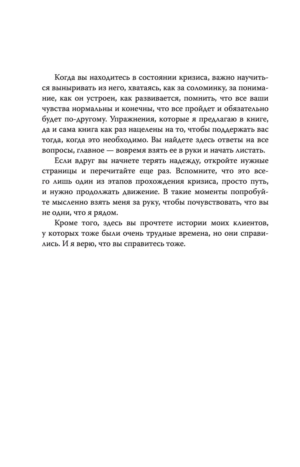 Слышали ли вы про кризис среднего возраста? Кризис разрыва? Кризис тридцати лет? В жизни мы проходим через множество кризисов. Когда ищем работу или теряем ее, разводимся или вступаем в новые отношения. Сталкиваемся с пандемией или политическими конфликтами. Как преодолеть кризис, как жить в нем, как выжить, остаться собой и вынести нужные уроки – читайте в этой книге.