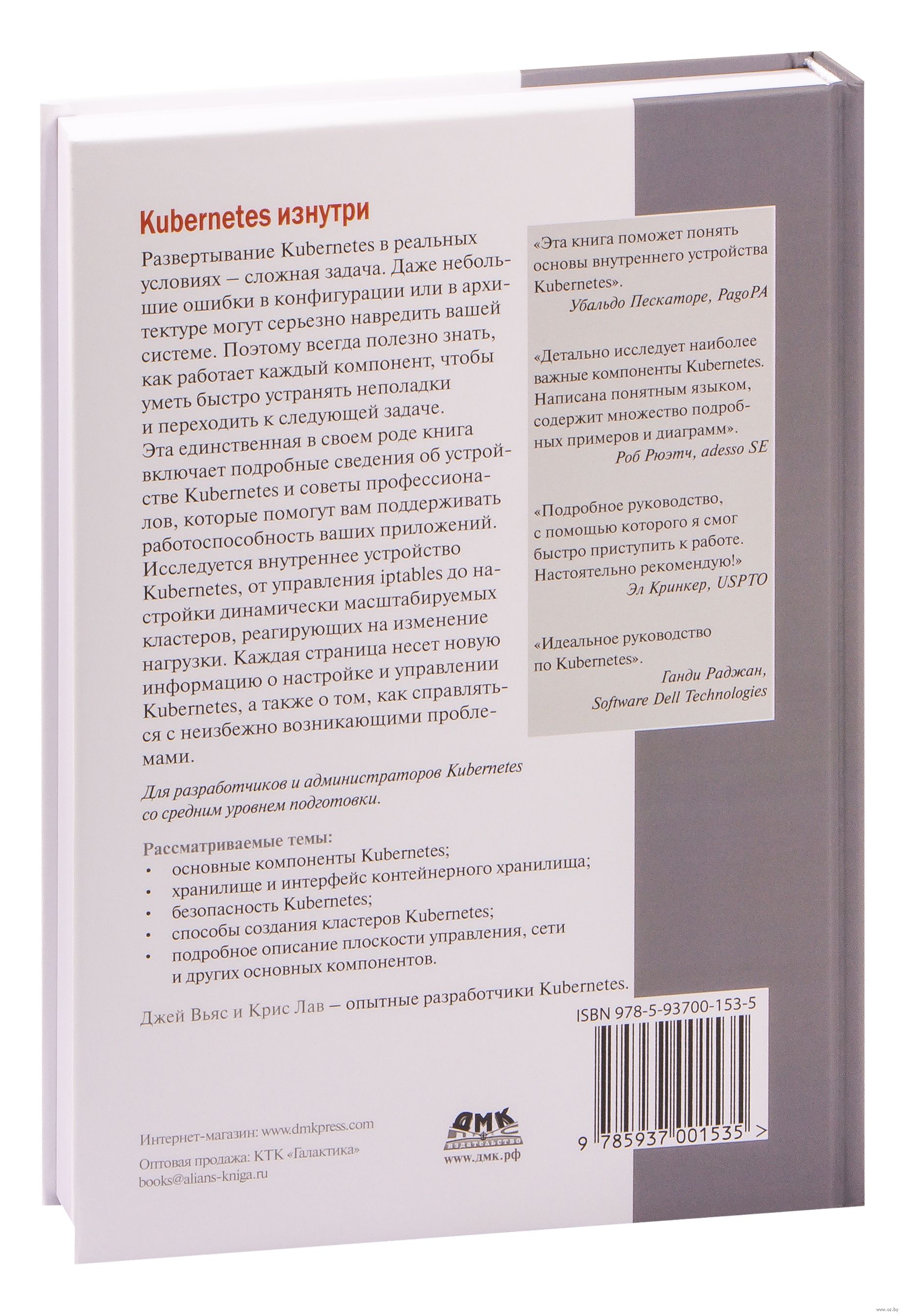 Развертывание Kubernetes в реальных условиях – сложная задача. Даже небольшие ошибки в конфигурации или в архитектуре могут серьезно навредить вашей системе. Поэтому всегда полезно знать, как работает каждый компонент, чтобы уметь быстро устранять неполадки и переходить к следующей задаче. Эта единственная в своем роде книга включает подробные сведения об устройстве Kubernetes и советы профессионалов, которые помогут вам поддерживать работоспособность ваших приложений.