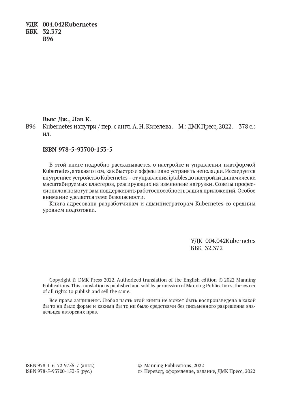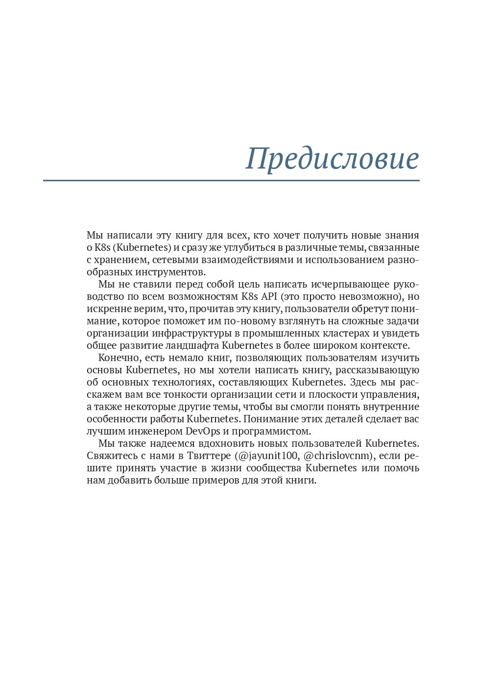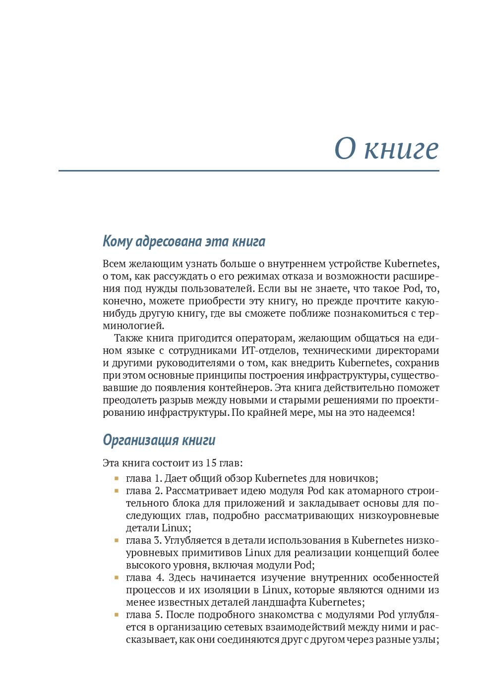 Исследуется внутреннее устройство Kubernetes, от управления iptables до настройки динамически масштабируемых кластеров, реагирующих на изменение нагрузки. Каждая страница несет новую информацию о настройке и управлении Kubernetes, а также о том, как справляться с неизбежно возникающими проблемами.