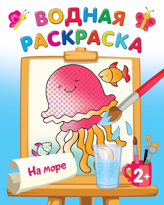 Проводишь мокрой кисточкой по бумаге – и перед тобой яркая картинка. Настоящее волшебство! Просто? Да! Весело? Ещё бы! И к тому же очень полезно: малыш знакомится с морскими обитателями, получает представление о форме и цвете, тренирует мелкую моторику и координацию движений.
