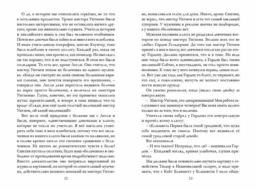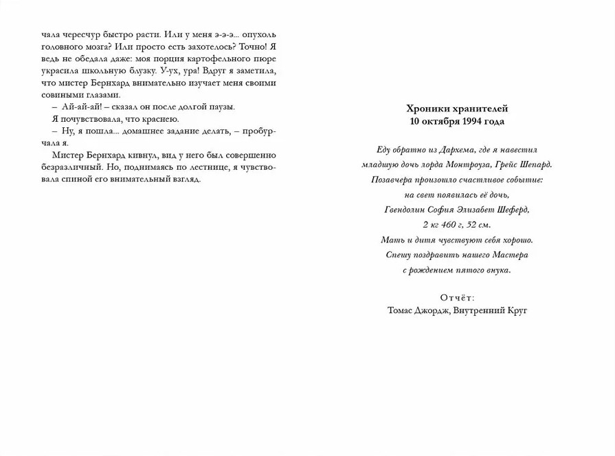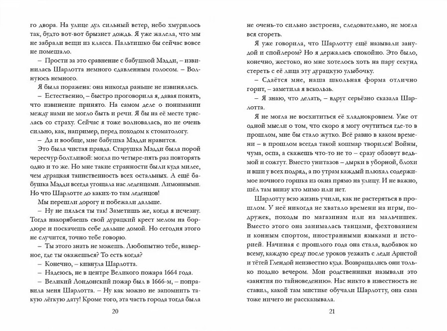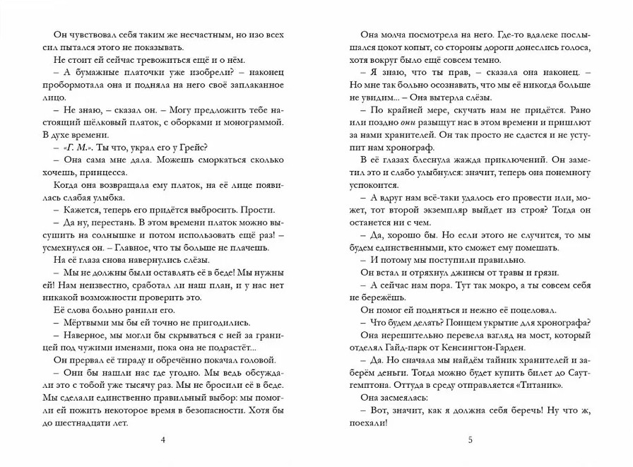Это один из тех случаев, когда к прочтению книги привел просмотр фильма, снятого по ее мотивам. Фильм мне понравился. Не могу сказать, чем именно, но что-то в нем однозначно "зацепило". Настолько, что я буквально за два дня "проглотила" всю трилогию. Среди отзывов на эту книгу есть немало авторства скептиков, утверждающих, что это "очередные розовые сопли для школьниц". Конечно, это не монументальный труд Маркса или что-то суперфилософское... Но это очаровательная, неожиданно веселая, с массой смешных моментов, трогательно-романтичная история. Да, героиня (и даже "очень взрослый герой-студент", что уж там) на несколько лет младше меня. Да, порой некоторые моменты вызывали улыбку, но не столько снисходительную, сколько немного ностальгическую (но ведь это здорово!). Да, это далеко не научная фантастика. Но я беру на себя смелость рекомендовать ее к прочтению всем!!! В трилогии "Таймлесс" рассказывается о шестнадцатилетней Гвендолин, в семье у которой полно тайн, мистики и... разногласий. В общем, как и у всех нас=) Как это обычно бывает, она считается самой заурядной личностью. Особенно по сравнению со своей двоюродной сестрой Шарлоттой. Но однажды (опять-таки весьма не неожиданно) выясняется, что это Шарлотта - ничем не примечательная девушка, а вот Гвендолин настолько необычна, что все вокруг даже и не до конца понимают, насколько... Запутанно? Вот и не обольщайтесь, там вся история такая. Ведь дальше идут бесконечные и беспорядочные "прыжки" во времени, в которых можно и запутаться. Естественно, с невообразимо симпатичным спутником. Логично, что в обрамлении суперсекретной детективной линии. Неудивительно, что все очень даже романтично. Ну да, не очень замысловатый сюжет. Но меня больше всего покорили персонажи. Они все выписаны так детально, с такой внимательностью и любовью, что у меня возникло непроходящее ощущение, будто они знакомы мне всю жизнь. Эмоциональная Гвендолин, самоуверенный (но черт побери, такой обаятельный!) Гидеон, моя любимая пара Люси и Пол... Но самая большая очаровашка (незаслуженно пропущенная в фильме) - демон-горгулья Ксемериус - 80% шуток, заставляющих хохотать в голос - его авторства. Обожаю его) Мда, мои впечатления довольно сумбурны, но очень сложно описать словами и по порядку, какое неповторимое удовольствие дарит эта книга. Прочтите ее сами. Уверена, Вам понравится! P.S. Стоит еще упомянуть, что все действие происходит в моем любимом Лондоне. Атмосфера непередаваемая...